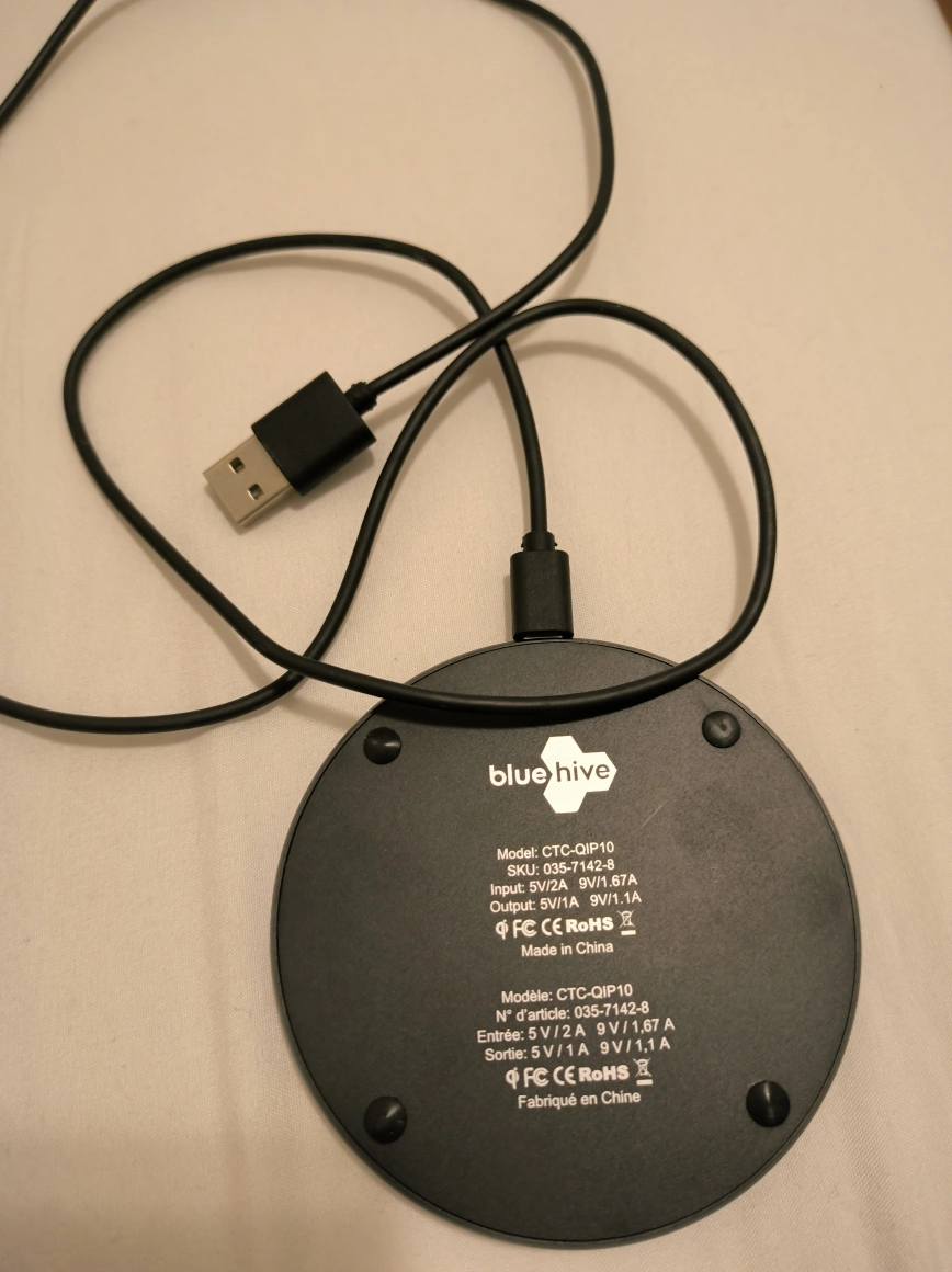 Selling a Bluehive wireless charger, model CTC-QIP10. Works well. Pick up near Front St./Princess St. in Downtown Toronto.