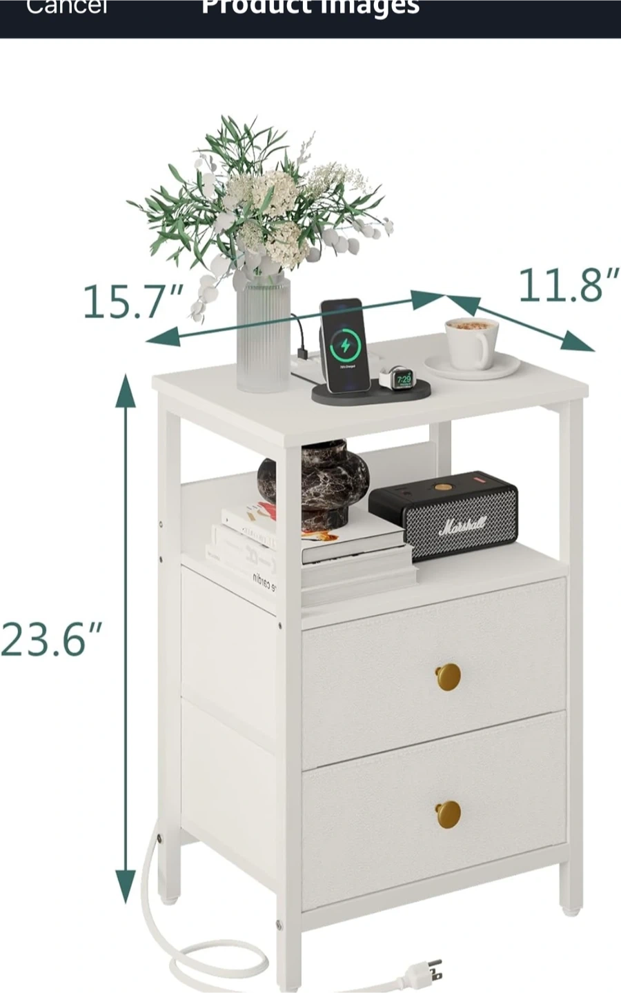 Show allJOONEE White Nightstand with Outlet & LED Lights