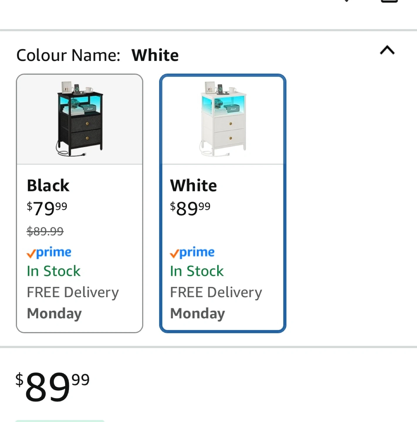 This is a JOONEE white nightstand with an outlet and LED lights! It's a modern bedside table with drawers, perfect as a small night table for a living room or bedroom. Pick up in Scarborough, near Warden and Lawrence Ave E $60