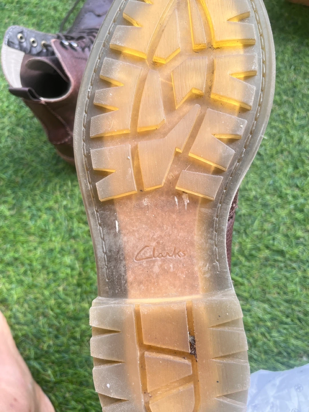 Selling a pair of Clarks men's boots in size 9M. The upper material is leather, and they're in good condition. The soles are durable and ready for anything!