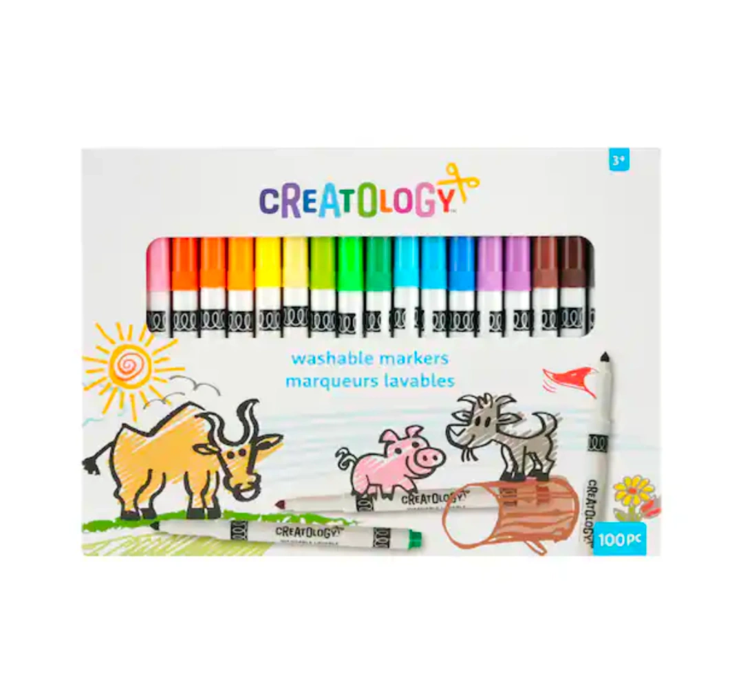 Get creative with this set of Creatology washable markers! This pack includes 100 vibrant colours, perfect for all your art projects. They're washable, making cleanup a breeze for parents and kids alike. Great for drawing, colouring, and more! I don't have an original box, however we never really touched them.