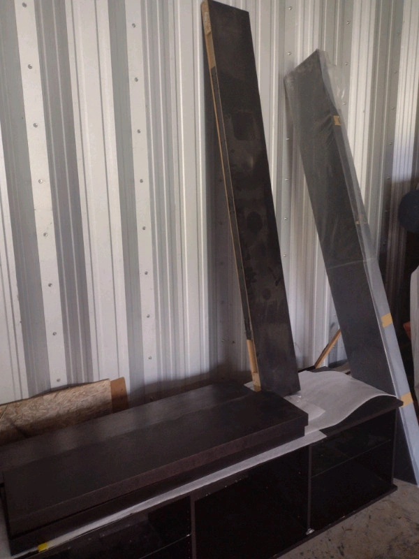 Shelf unit (6 shelves) $50 each Hight 80 " Width 23 3/4 " Depth 11 " Has a couple of small holes in the back part of the shelf Tv stand with 2 glass shelves $50 Height 19" Width 67" Depth 19 1/2" 5 Floating shelves $30 each Height 2 inches Width 43 1/2" Depth 10 1/4" 2 Floating shelves $50 each Height 2 inches Width 75" Depth 10 1/4" Total price $350. If all pieces are purchased, price can be reduced to $300