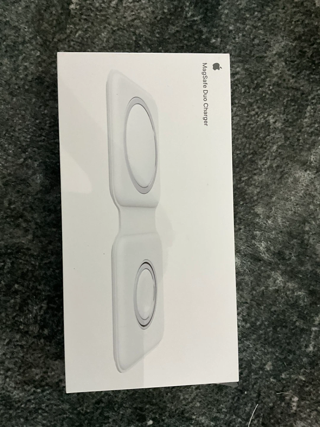 Selling a brand new Apple MagSafe Duo Charger, still in its original packaging! It's perfect for charging your iPhone, Apple Watch, Wireless Charging Case for AirPods and other Qi-certified devices. This charger is ideal for travel, as it conveniently folds together. Includes both USB-C to Lightning Cable.