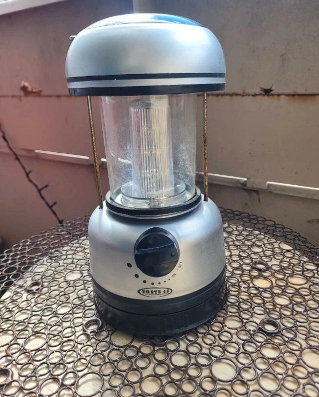 Light up your camping adventures with this North 49 led camping lantern. It features a sturdy design and bright LED, perfect for illuminating your campsite. Condition: It has been used and shows signs of wear with some rust (please see photos), but it still works great. * Brand: North 49 * Type: Portable LED Lantern * Power Source: Batteries (not included) Please remember that if the ad is still up, the item is available.