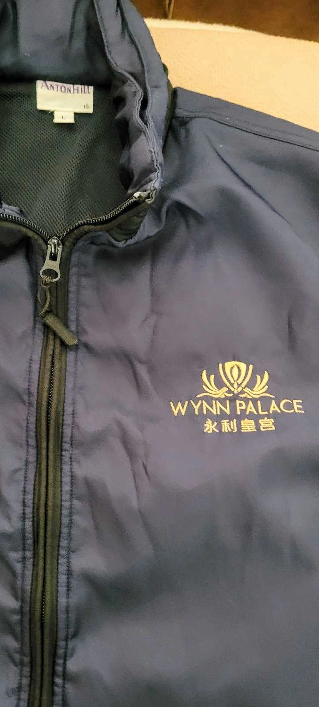 This is a Wynn Palace jacket, perfect for those cooler days. It's in good condition and ready for a new home. * Brand: Antoshill * Size: L Let me know when you'd like to pick it up.