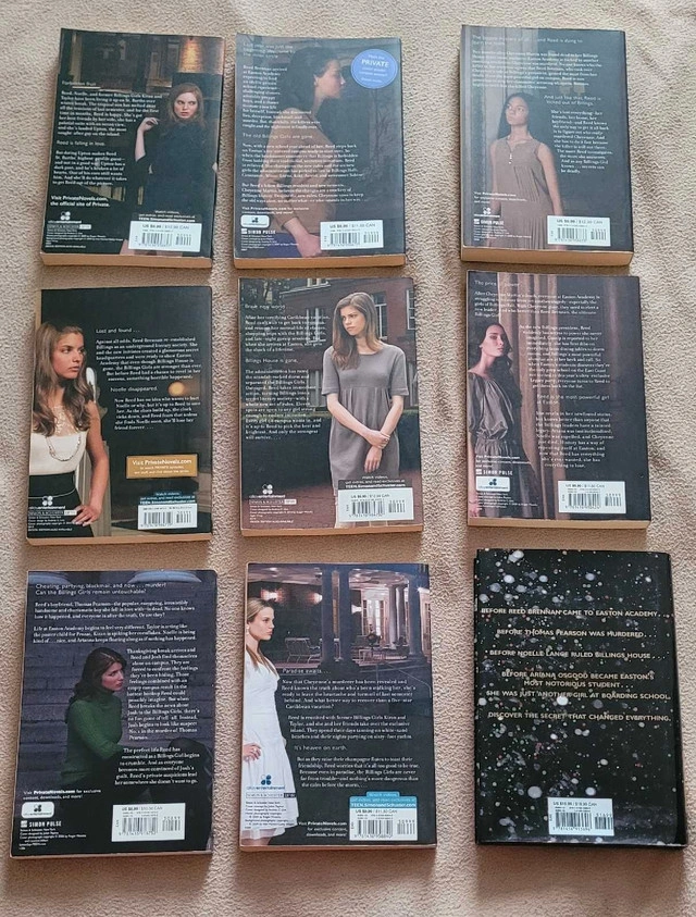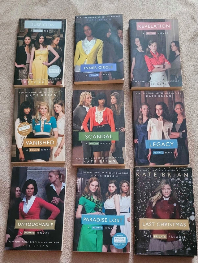 Dive into the thrilling world of privilege and secrets with this Kate Brian Private series book set! This collection includes eight captivating paperbacks, perfect for young adult readers who love drama and mystery. Though these books have been previously enjoyed, they're still in good condition and ready for a new reader to get lost in their pages. Titles include: - Suspicion - Inner Circle - Revelation - Vanished - Scandal - Legacy - Untouchable - Last Christmas Get ready to uncover the dark side of elite boarding schools and the scandalous lives of the students who attend them! If this ad is still up, the books are still available!