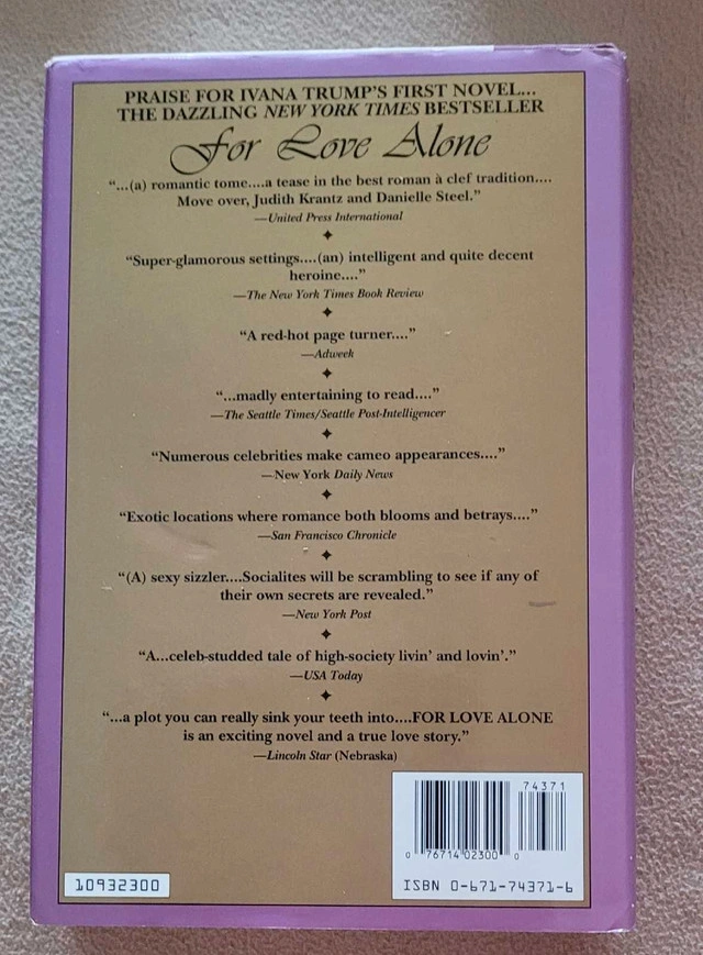Ivana Trump's "Free to Love" paperback novel offers readers a captivating journey through love and relationships. This particular copy is in good condition, ready to transport you to a world of passion and intrigue. * Author: Ivana Trump * Title: Free to Love * Format: Paperback * Genre: Romance Ready to dive into a world of glamour, romance, and wit? Grab this book before it gallops away like a runaway bestseller! And yes, if the ad is up the book is still available!