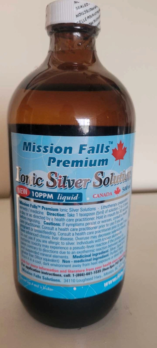 I'm selling a brand new bottle of Mission Falls Premium Ionic Silver Solution, boasting a concentration of 10PPM in a 500ml bottle, right here in Canada. This solution is sealed and ready for use. If you're curious, here are the specifications: * Brand: Mission Falls * Solution: Ionic Silver * Volume: 500ml * Concentration: 10PPM * Origin: Canada Given the unique nature and potential benefits, I'm pricing this bottle at $40.