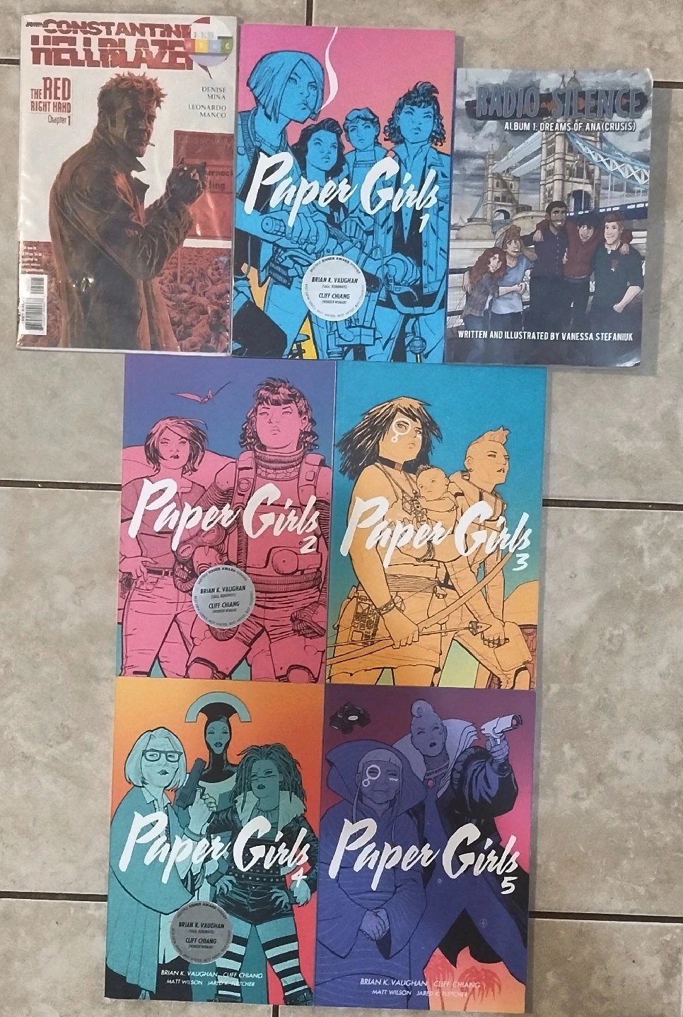 Selling the Paper Girls comic book series by Brian K. Vaughan! Also included is Constantine Hellblaze and Radio Silence Album 1: Dreams of Ana(crusis) $2 each or $10 for the whole bundle.
