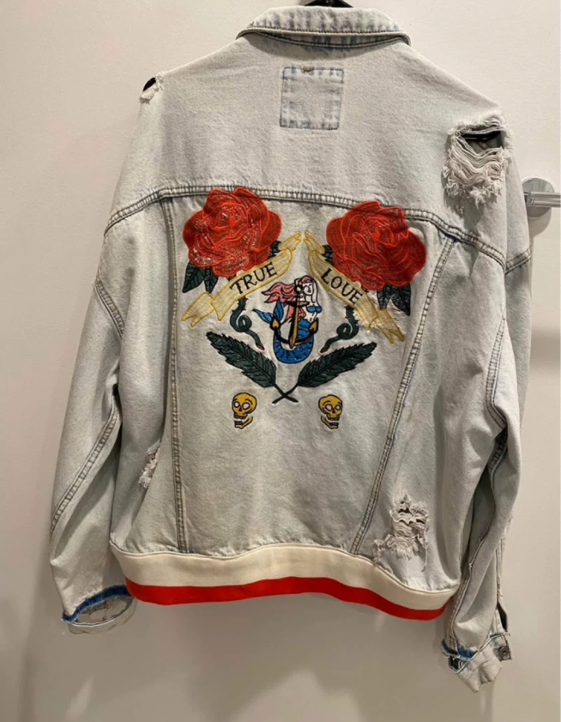 Light Blue Denim Jacket Distressed OneSize Biker Style