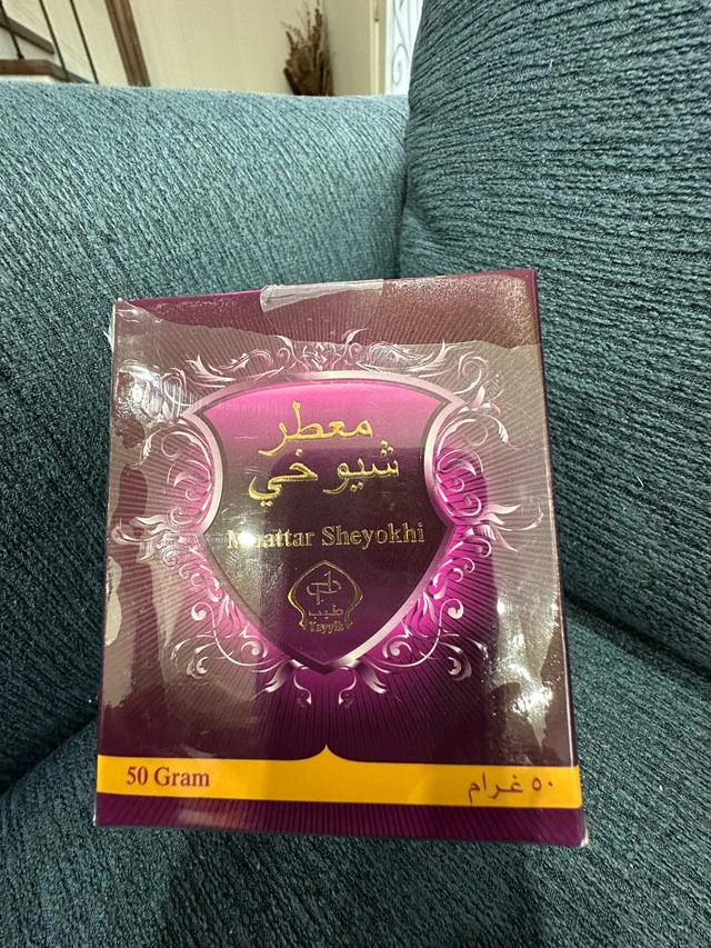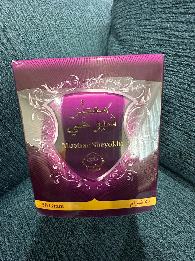 Enhance your home with Muattar Sheyokhi, a 50-gram block of Tayyib premium incense, perfect for creating a warm and inviting atmosphere. This luxurious bakhoor is brand new, offering an authentic Arabian fragrance experience. * **Brand**: Tayyib * **Type**: Muattar Sheyokhi Bakhoor * **Weight**: 50 grams * **Condition**: New Let this exquisite scent transport you to a world of aromatic bliss. And remember, if the ad is up, it's still available, so you're in luck!
