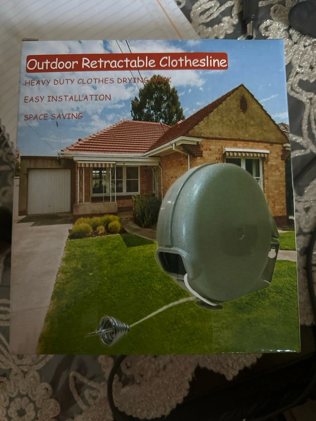 This brand new Outdoor Retractable Clothesline is heavy duty, space saving, and offers easy installation. - Heavy duty clothes drying rack - Space saving design - Easy installation Looking for a whimsical way to dry your clothes? This retractable clothesline is your answer! If the ad's still up, it's still available!