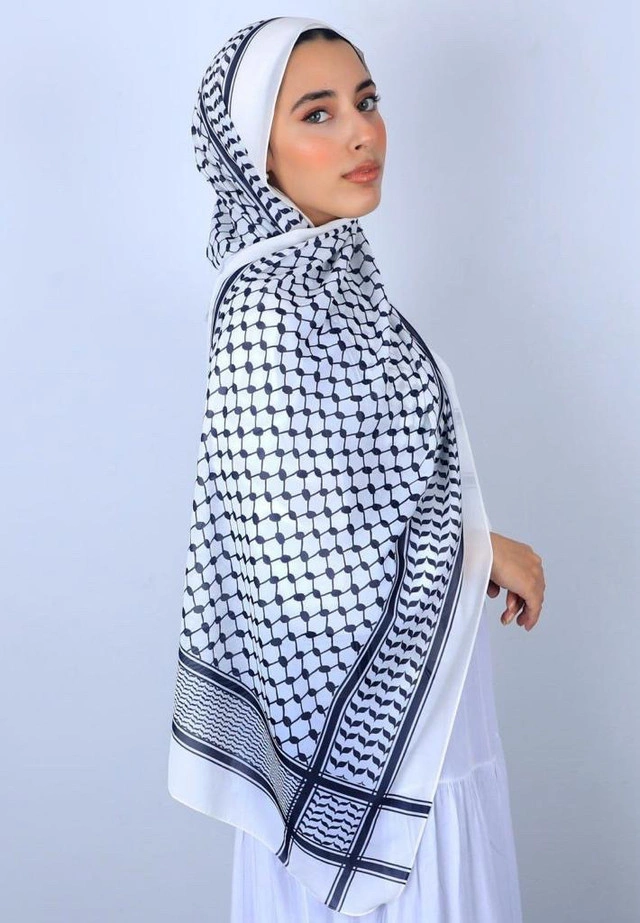 Add a touch of cultural elegance to your wardrobe with this exquisite Palestinian Keffiyeh Hijab. Measuring 120cm x 120cm, this scarf is crafted from a soft, lightweight material, making it perfect for year-round wear. The classic black and white pattern adds a timeless flair to any outfit. * **Size:** 120cm x 120cm * **Material:** Lightweight, soft fabric * **Design:** Traditional Palestinian Keffiyeh pattern * **Colour:** Black and White Looking to accessorize? This keffiyeh is just the thing! If the ad's still up, it's still available!