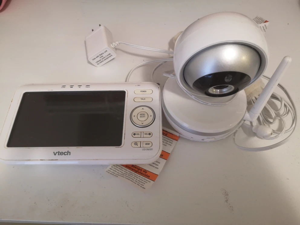 Selling a VTech baby monitor that comes with both the parent unit and the baby unit camera. It's in good working condition and ready to use to keep an eye on your little one!