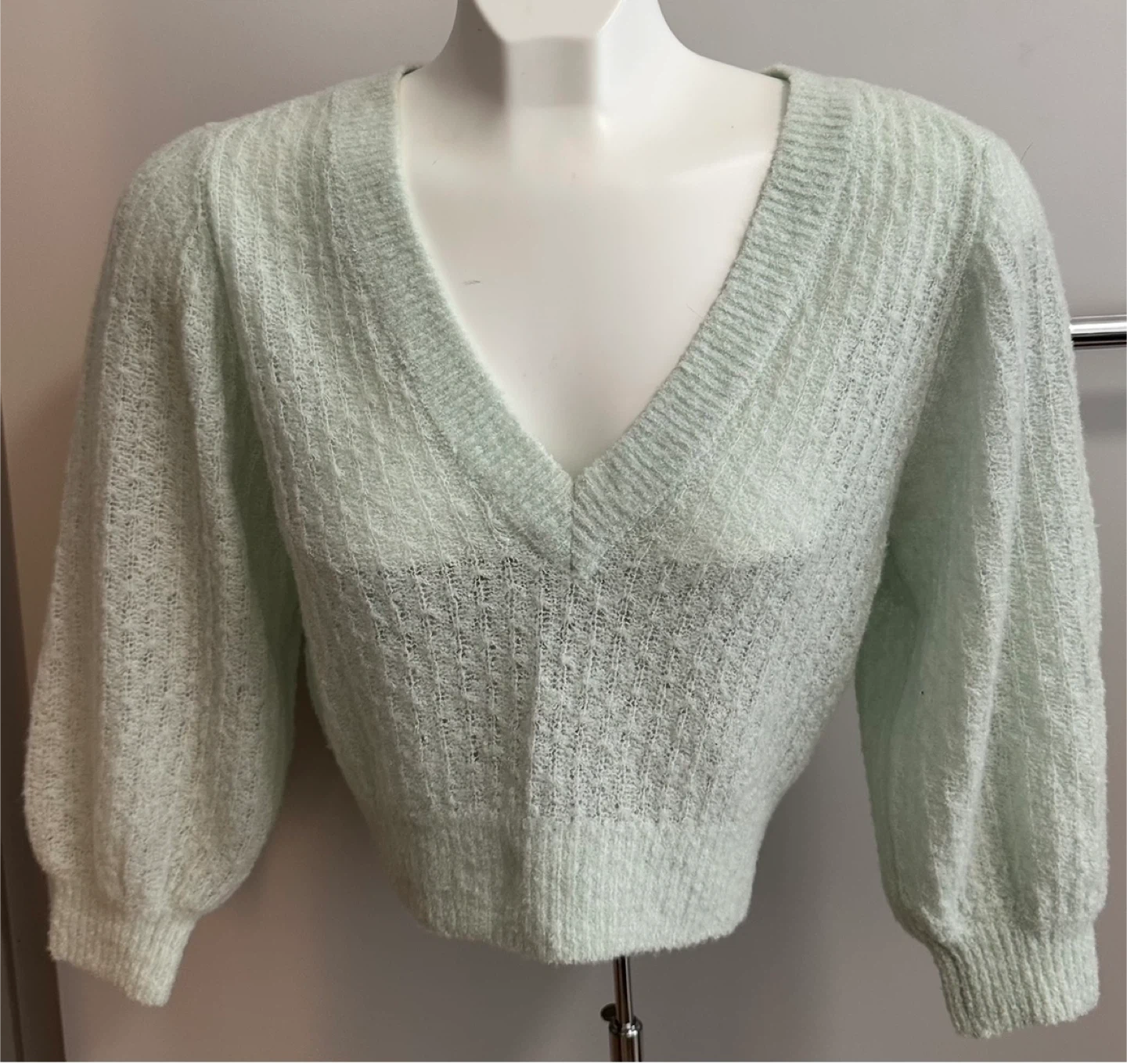 Aritzia sweater for sale in a lovely light green mint colour! It's made of 80% Merino Wool and 20% Nylon. Size small and in great condition!