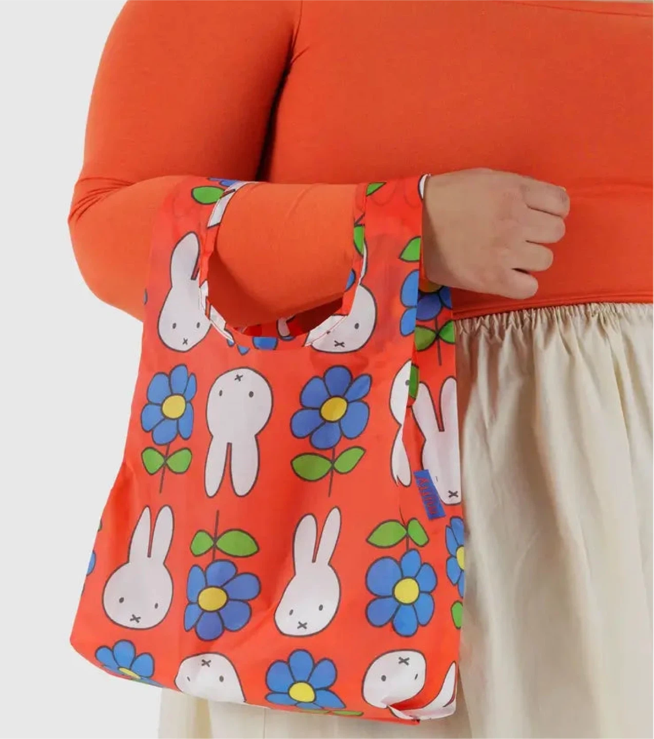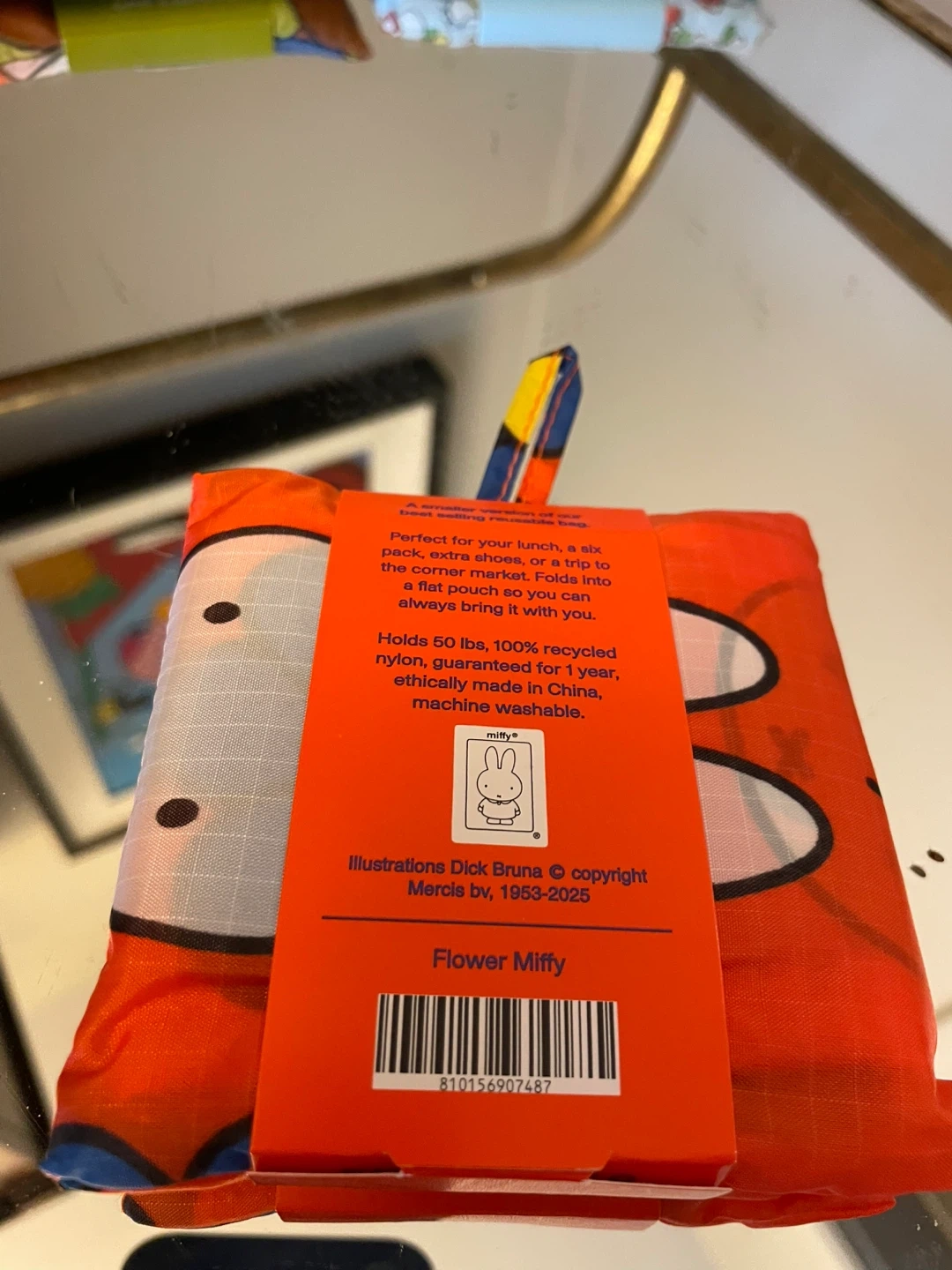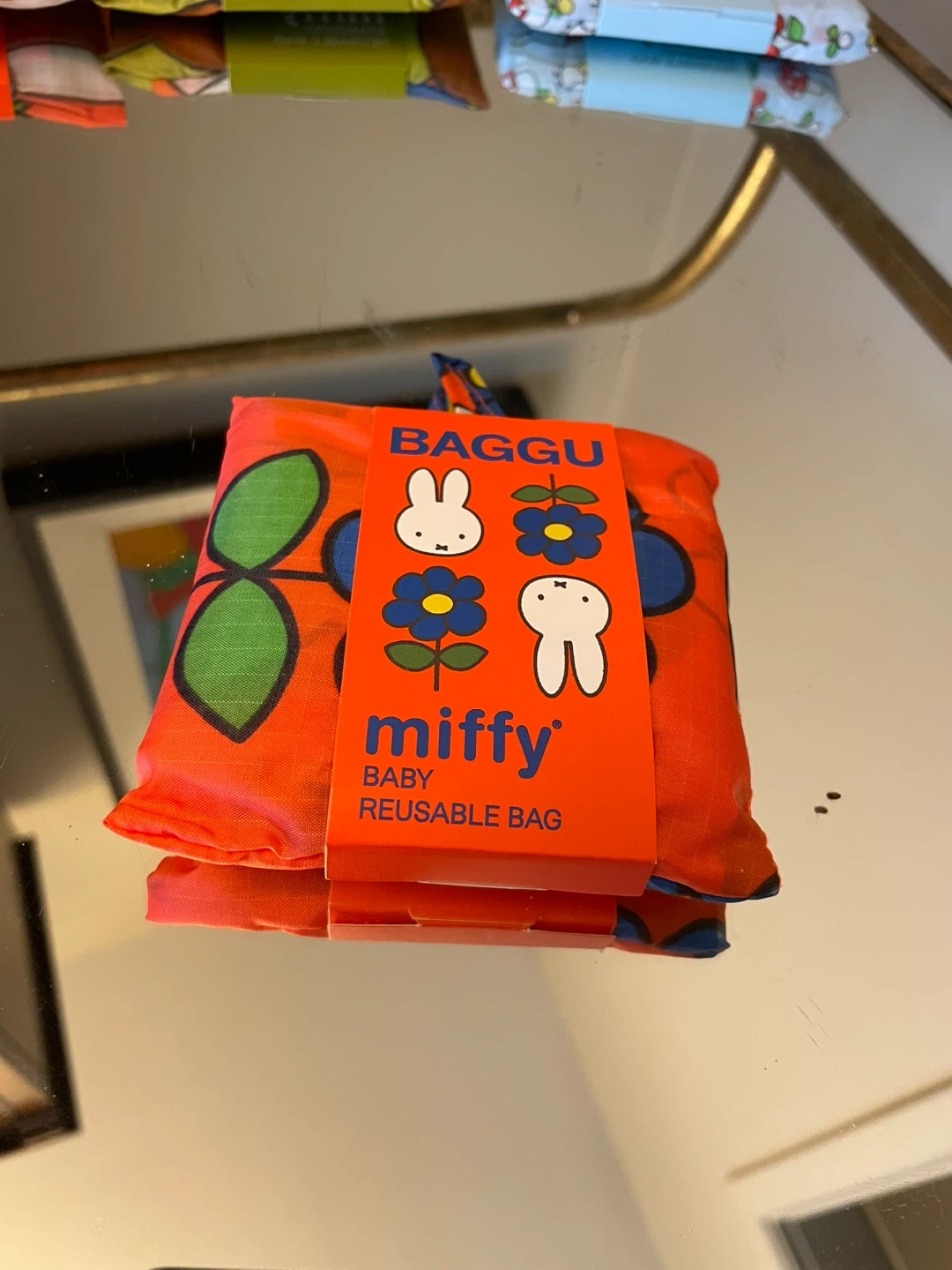 This is a BAGGU reusable bag in the Flower Miffy design! It's perfect for your lunch, six-pack, extra shoes, or a trip to the corner market. It folds into a flat pouch so you can always bring it with you. It holds 50 lbs and is made from 100% recycled nylon, guaranteed for 1 year, ethically made and machine washable! . Located in Osborne Village with easy access to driveway for pickup . Selling brand new with tags Miffy Baggu baby sized bag - Flowers a smaller version of the original reusable shopping bag perfect for lunch, out in the boat, a trip to the corner store, or a perfect shoe bag folds into its own flat 4" x 4" pouch measures 18" x 10" x 4 carries up to 50 lbs comfortably recycled ripstop nylon machine washable Currently 1 available . Preferred payment is etransfer . Cash is accepted on a very short hold . Please see my other listings for more Miffy and Baggu