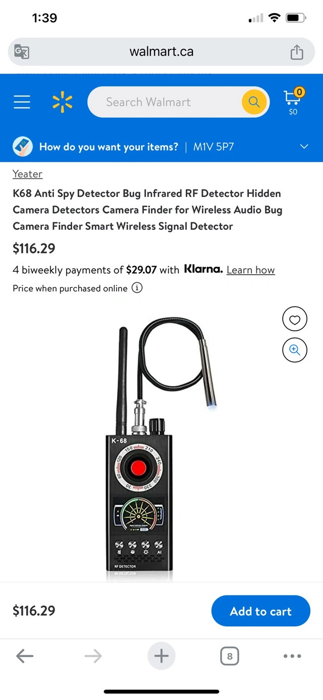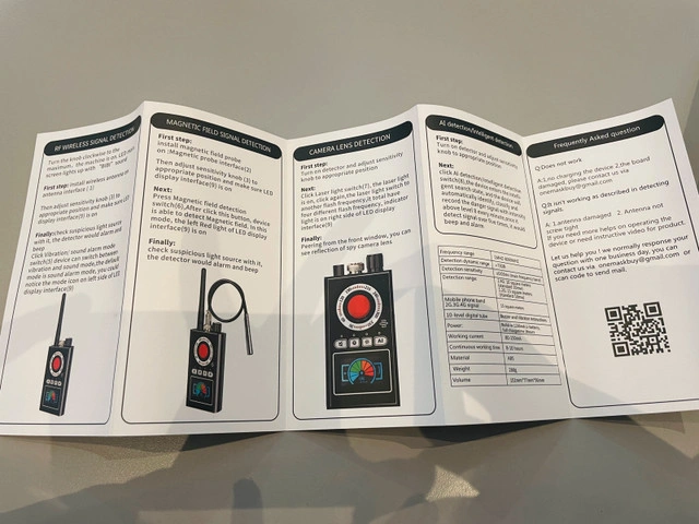 The upgraded K68 spy detector provides 4 functions: RF signal detection, magnetic field detection, infrared detection, and smart detection, helping you find wireless cameras, bugs, and GPS trackers. With an upgraded LED display, the signal pointer will point to a higher danger level as it approaches the suspect signal source, making the search process more intuitive and efficient. One charge can be used continuously for 8-10 hours. Pick up near 14 Avenue & Markham Road or I may also be able to meet at 500 Esna Park Dr, Markham. Thank you for your interest!