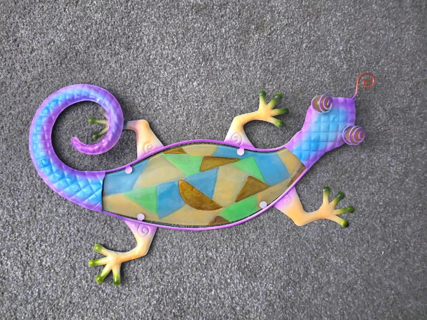 Cute metal gecko wall decoration! glows in the dark 18 inches wide
