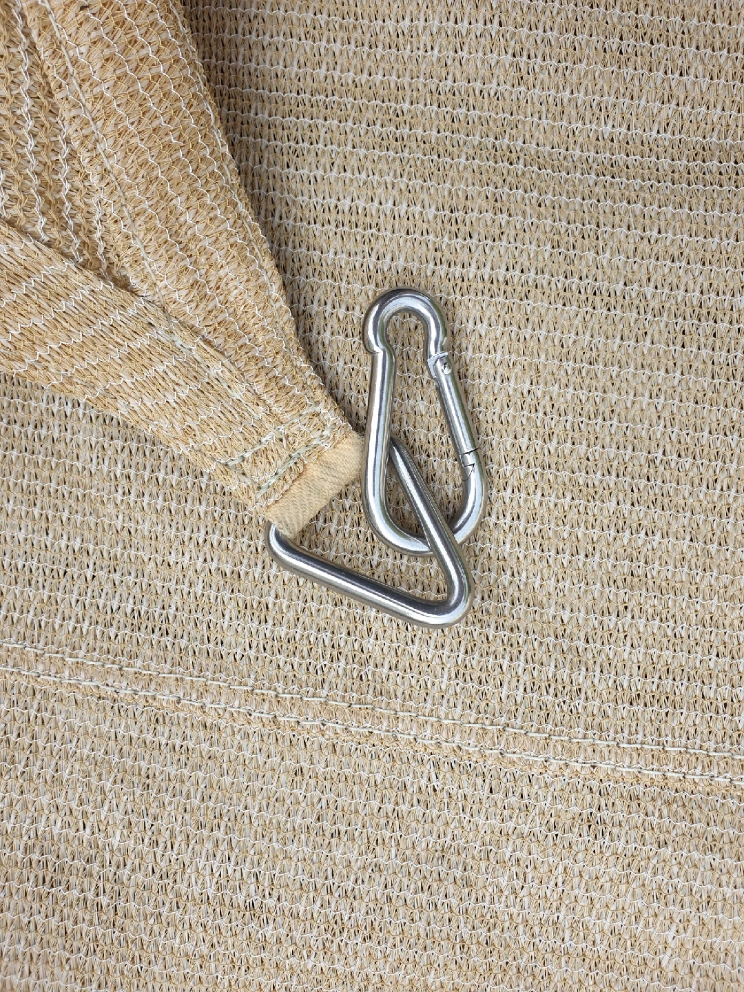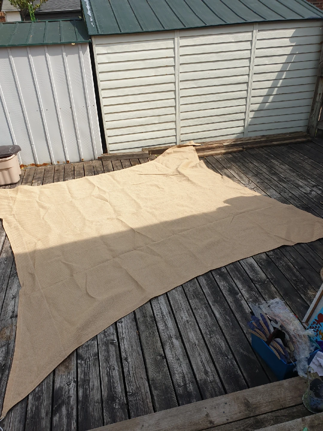 Protect your outdoor space with this triangle sun shade sail, designed to block sunlight and keep you cool; this is a used item. Key features include: * Shape: rectangular * Material: High-density polyethylene (HDPE) * Colour: Beige * Includes: Turnbuckles Add a touch of whimsy to your patio, deck, or garden! Please note: if the ad is still up, it's available! No holds first pu. $60.00 OBO.