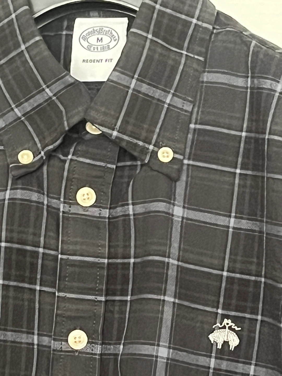 Brooks Brothers button-down shirt in a plaid pattern. It's a Regent Fit and Men’s size medium. In great condition. Perfect for a casual or semi-formal look!