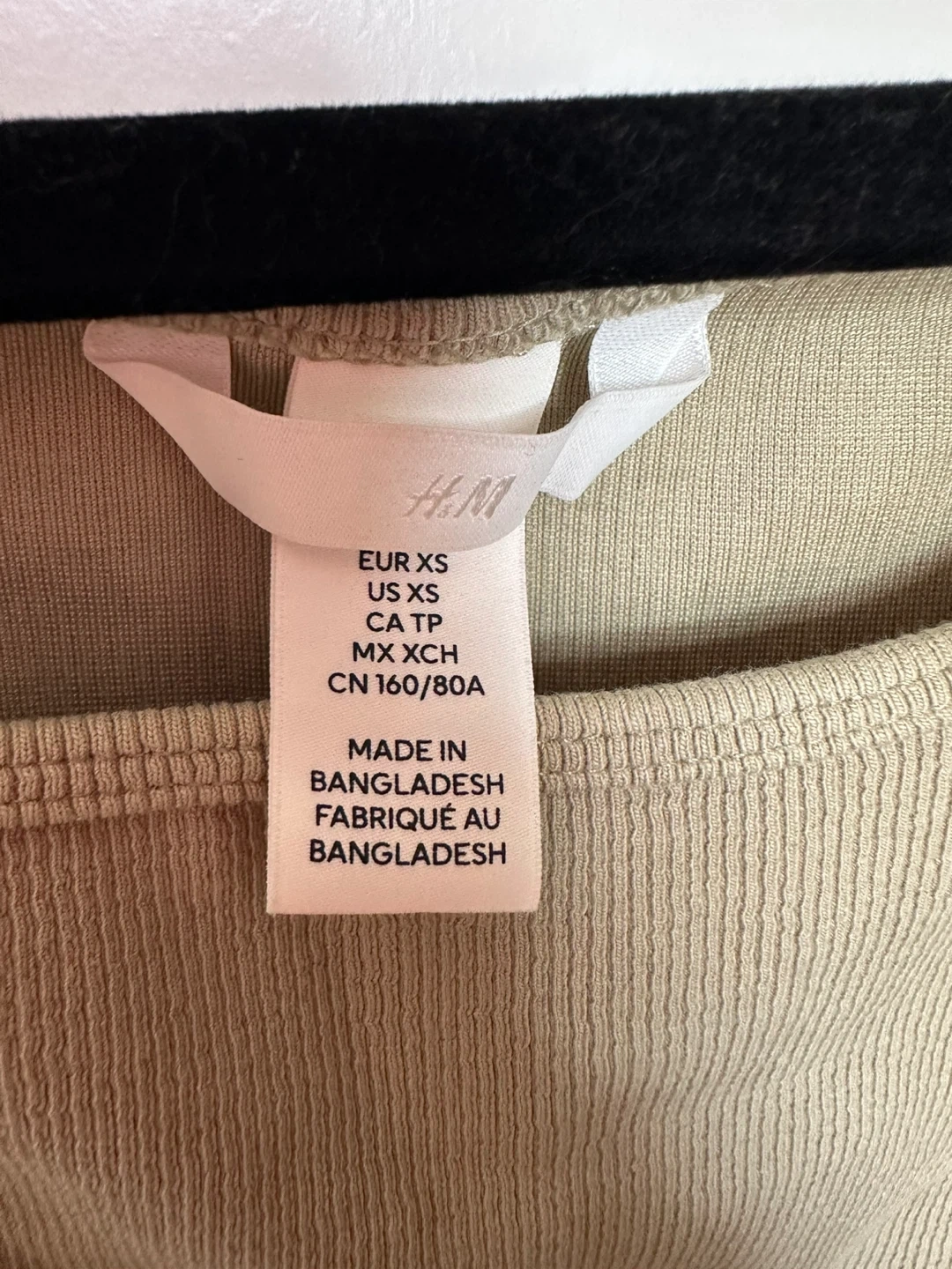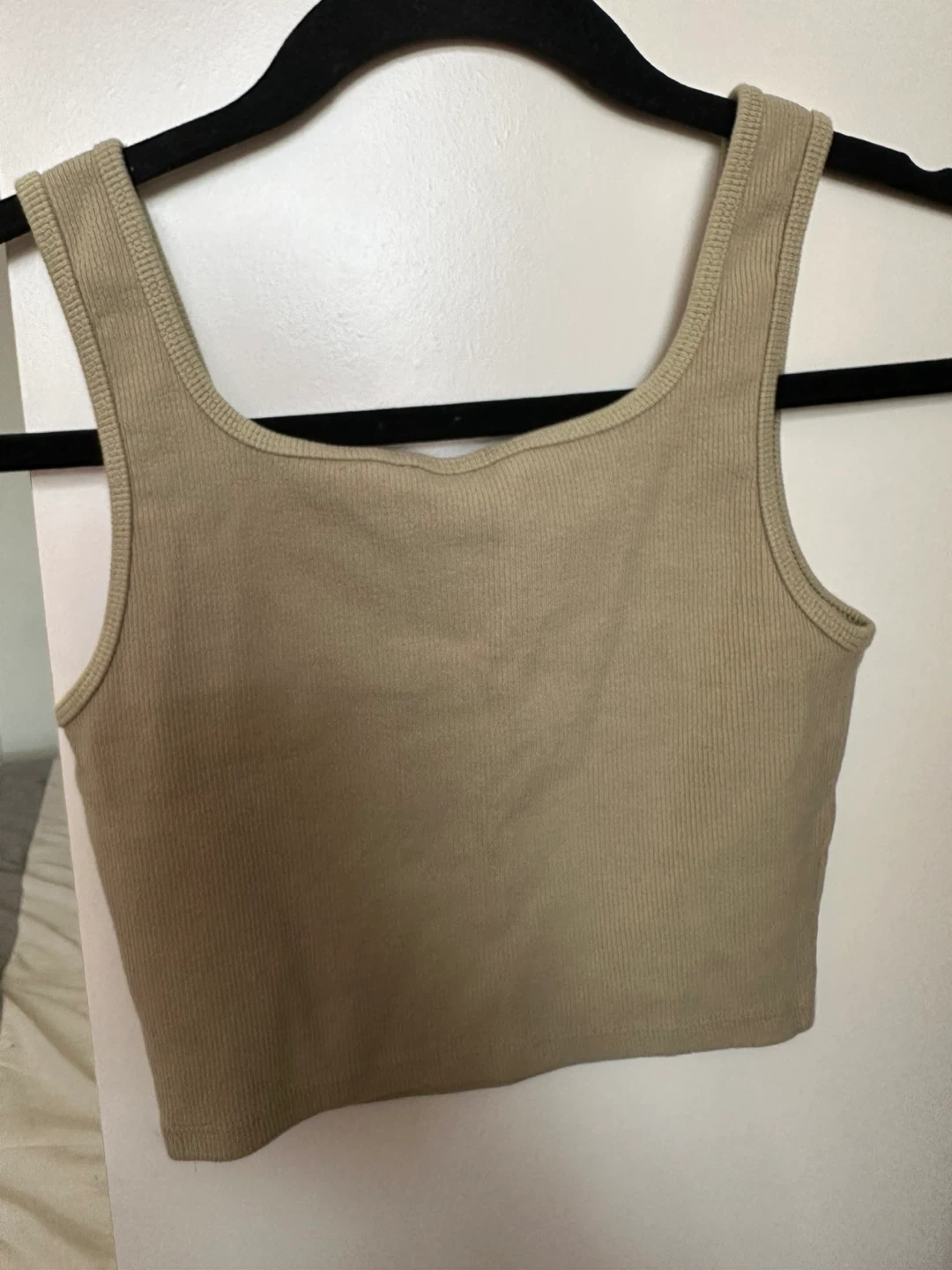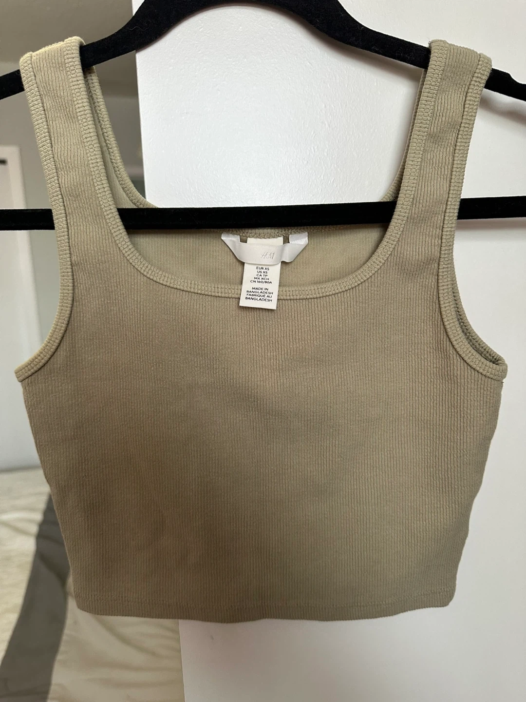 Selling a cute H&M ribbed tank top in size XS. It's a lovely beige colour and in great condition. Perfect for layering or wearing on its own! Pay by cash please