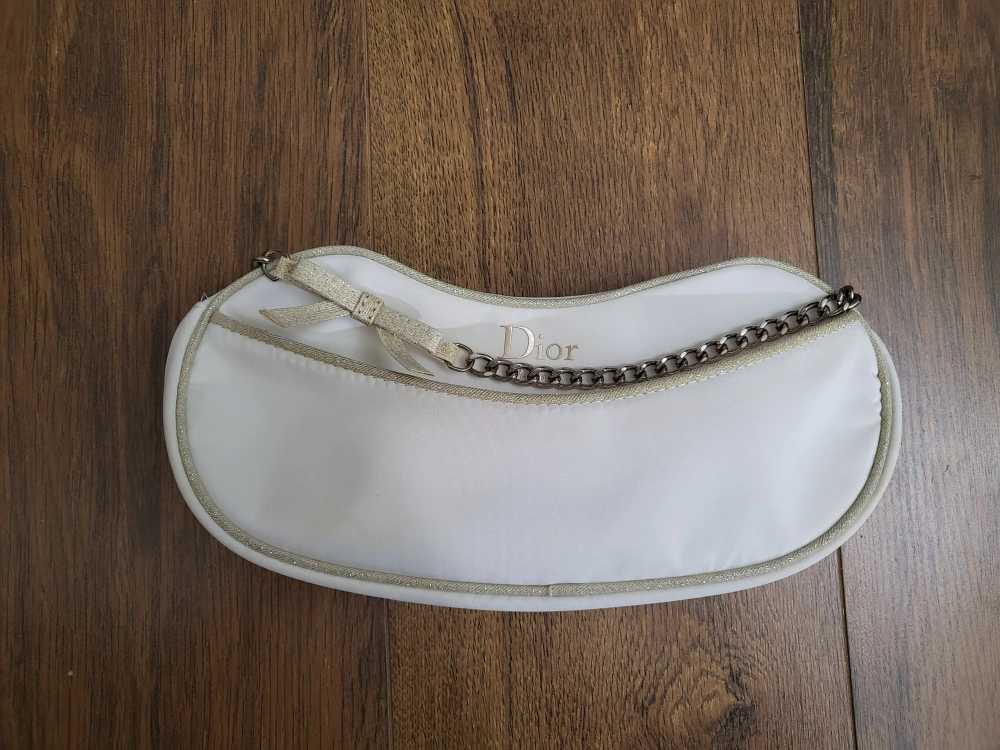 Selling a cute Dior white clutch with a chain strap! It's in great condition. This bag was part of Dior perfume merchandise. Would make a good makeup bag as well.