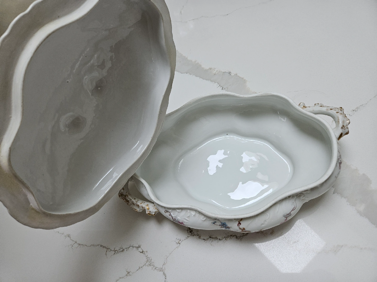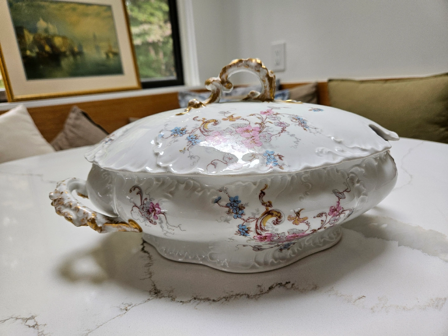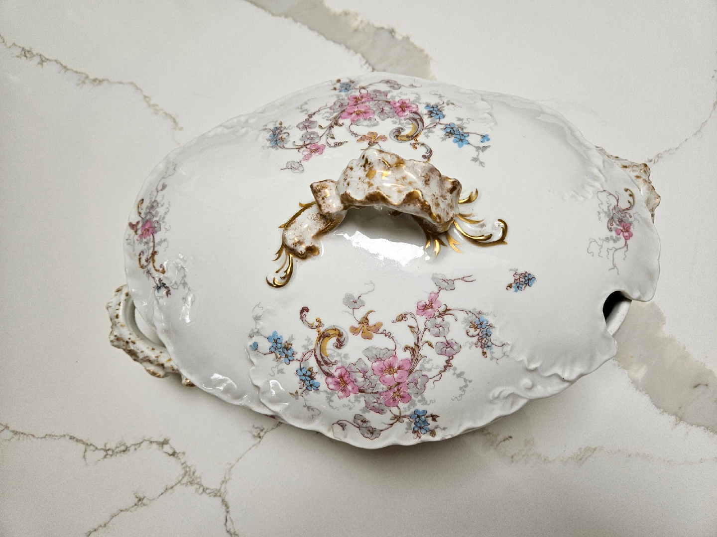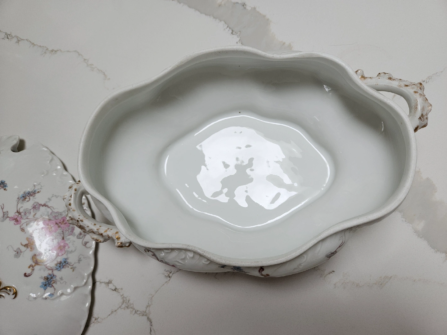Selling a beautiful vintage french Limoges soup tureen! It features a delicate floral design and ornate gold accents. Perfect for adding a touch of elegance to your dining table or collection.
