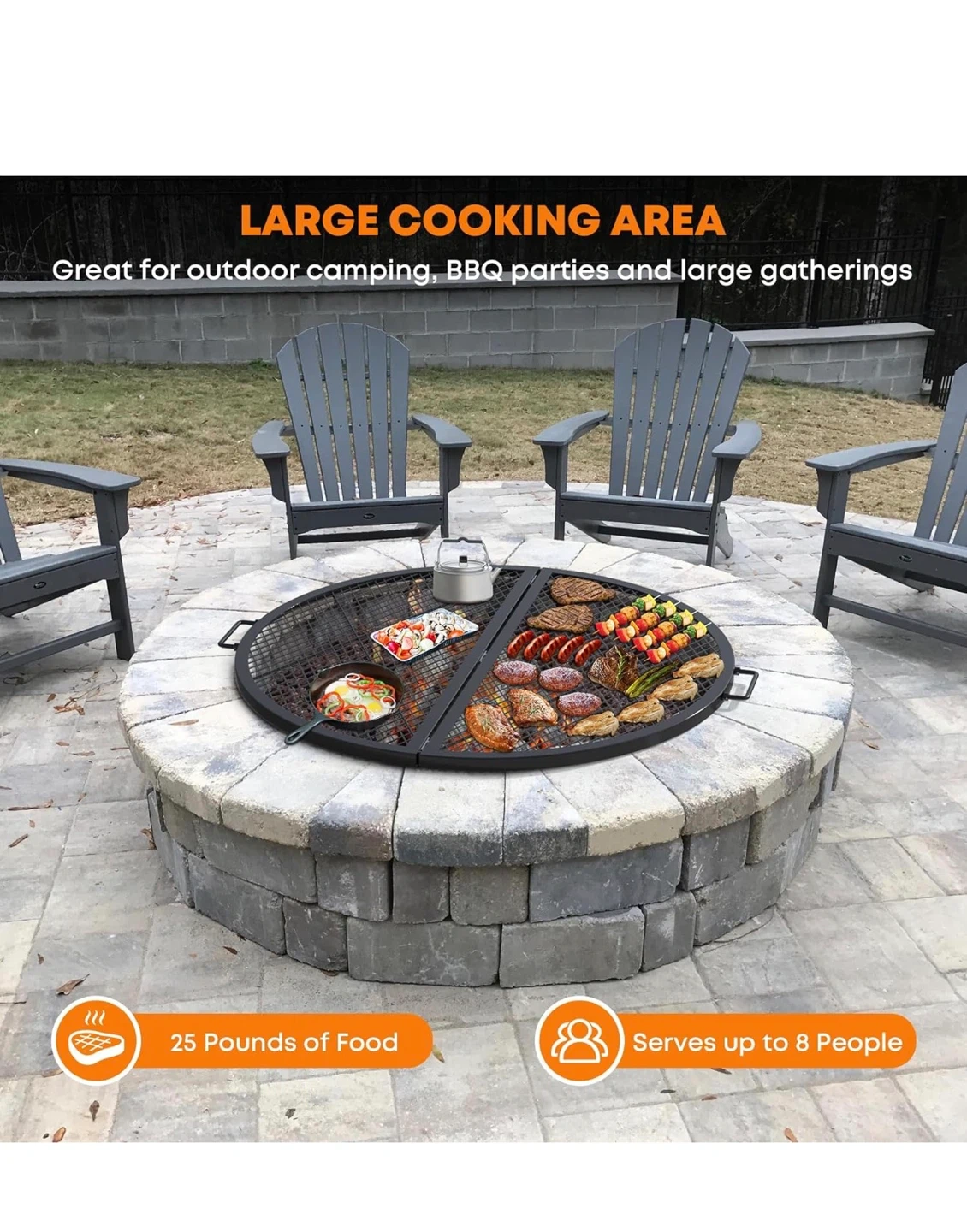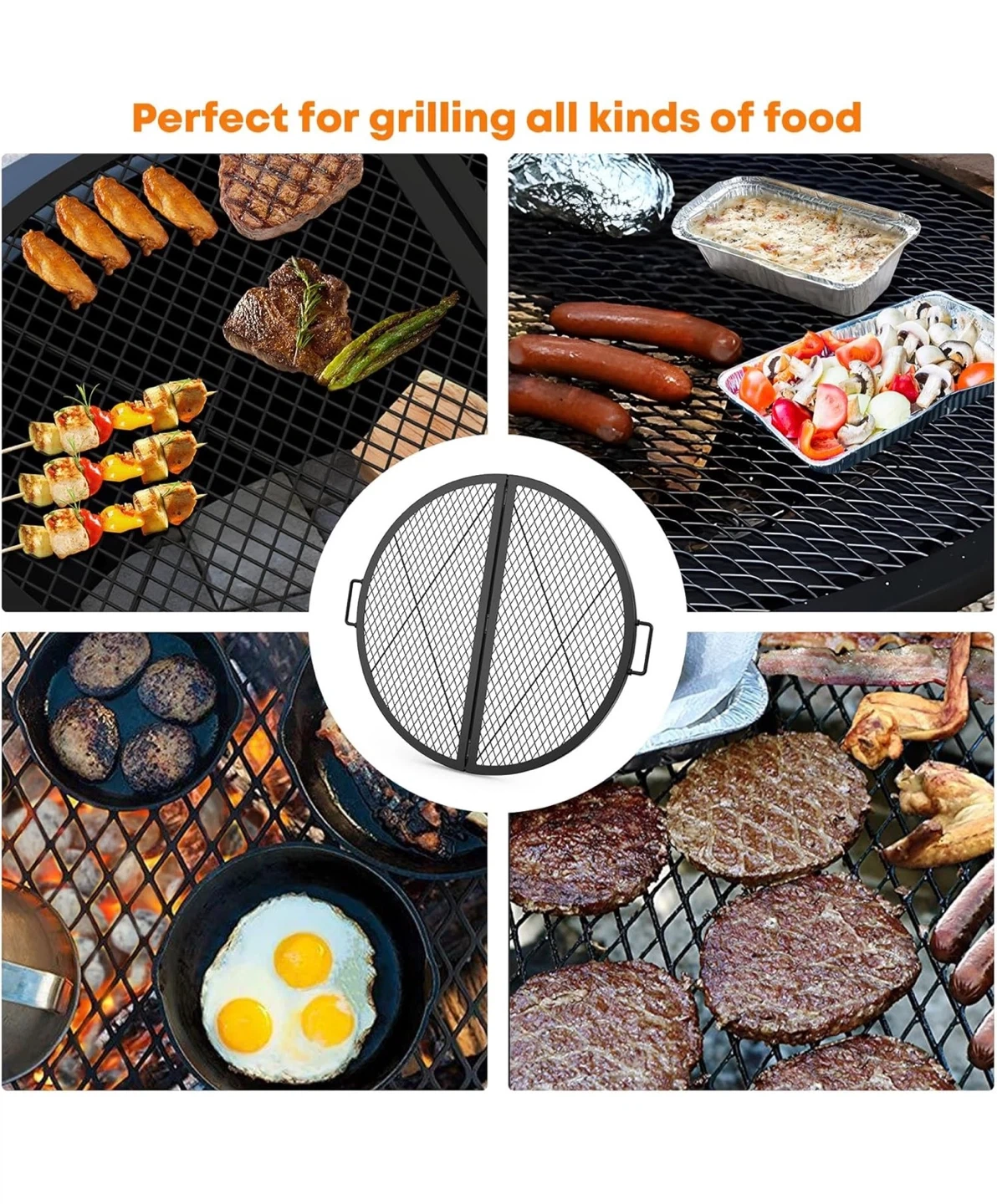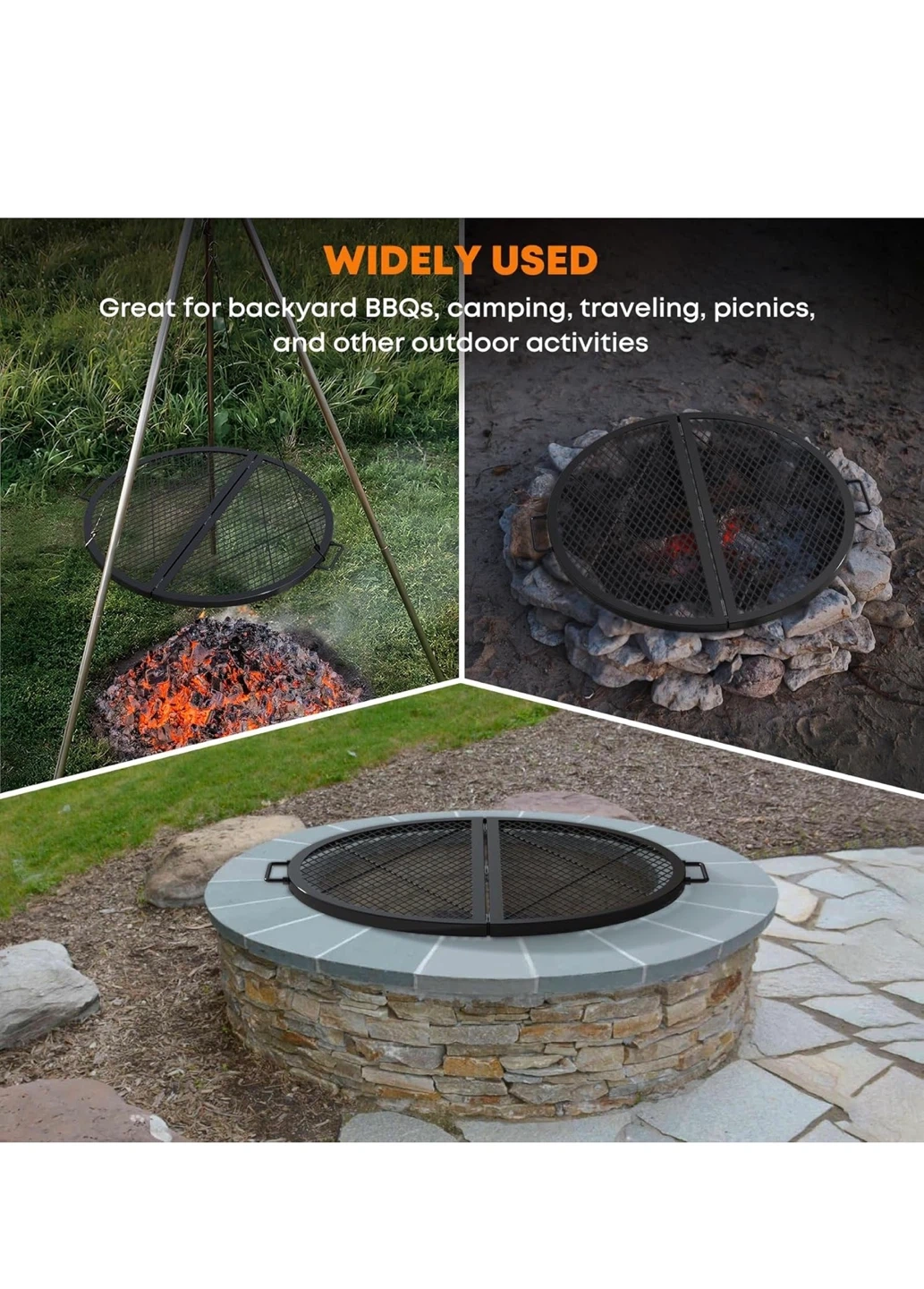 Get ready for outdoor cooking with this Stanbroil X-Marks Fire Pit Cooking Grate! It features a large cooking area perfect for camping, BBQ parties, and large gatherings. - Made with high-quality black steel and a heat-resistant coating, it's safe, rust-resistant, and durable - Portable handles and stainless steel hinges for sturdy construction - The thick and tight grids are heat-resistant without warping, so food won't fall down - Grid thickness: 0.07" / 1.8 mm - Heat resistance: 572°F / 300°C - Load-bearing: 44 lbs / 20 kg - Easy to clean