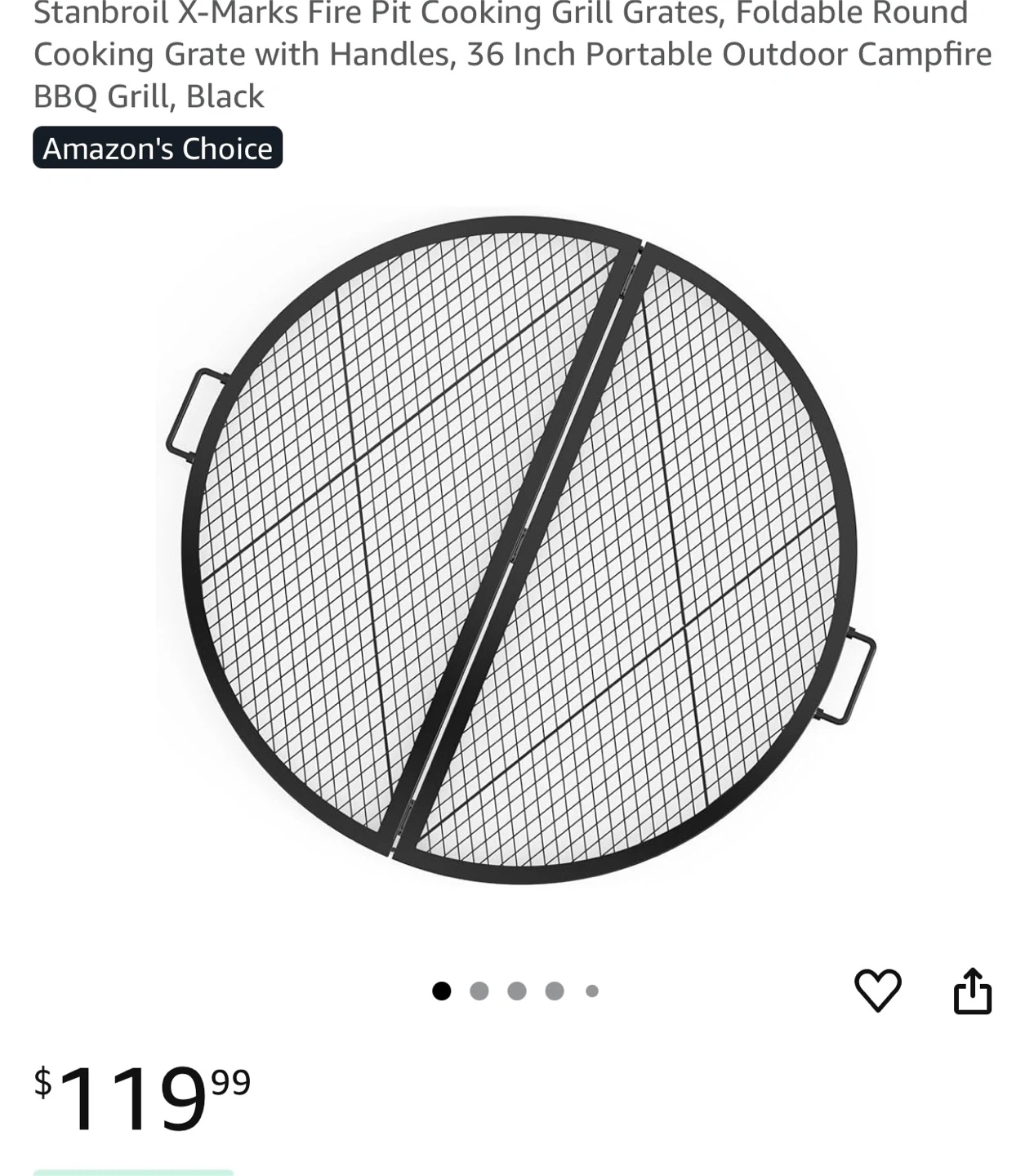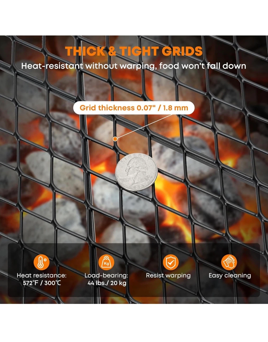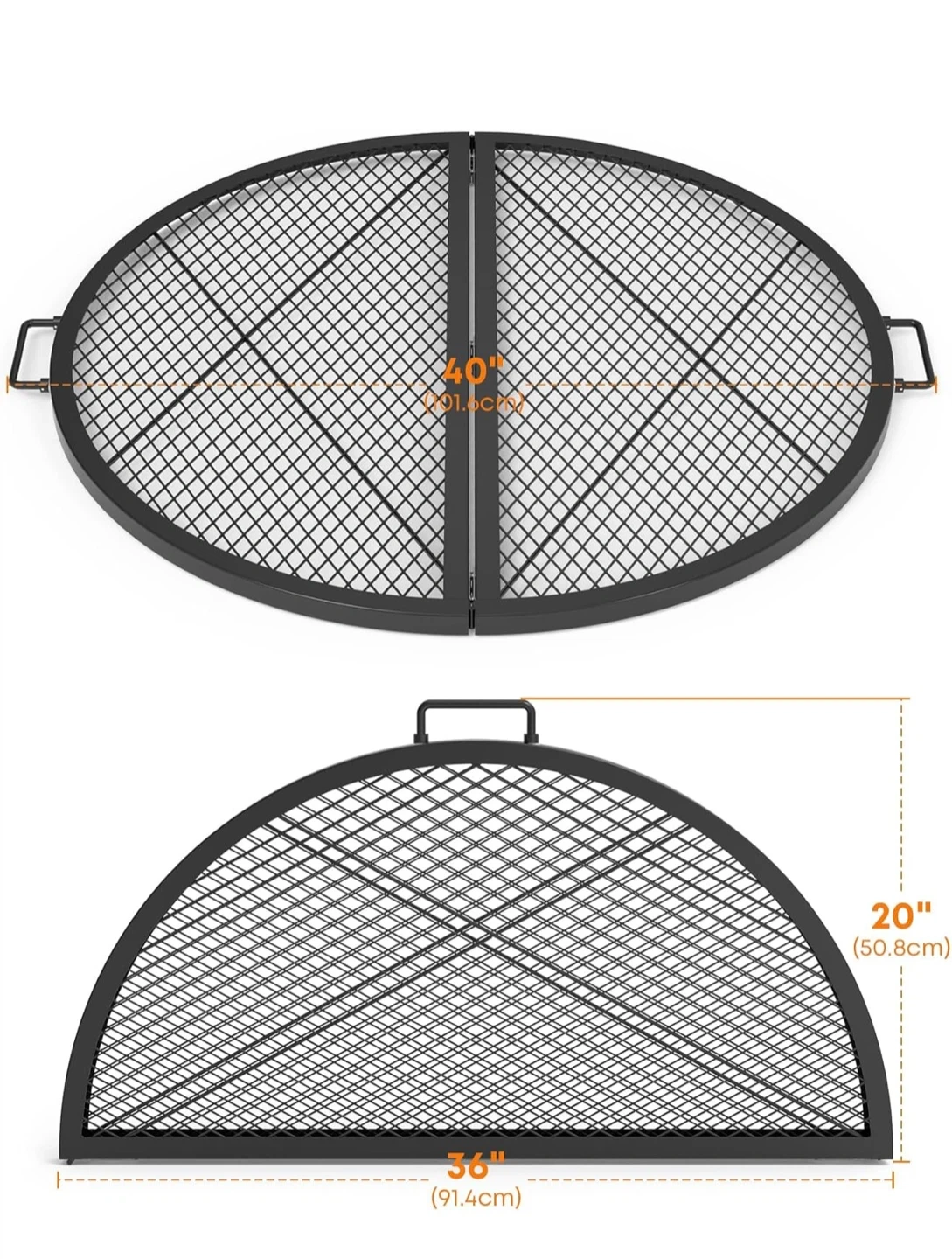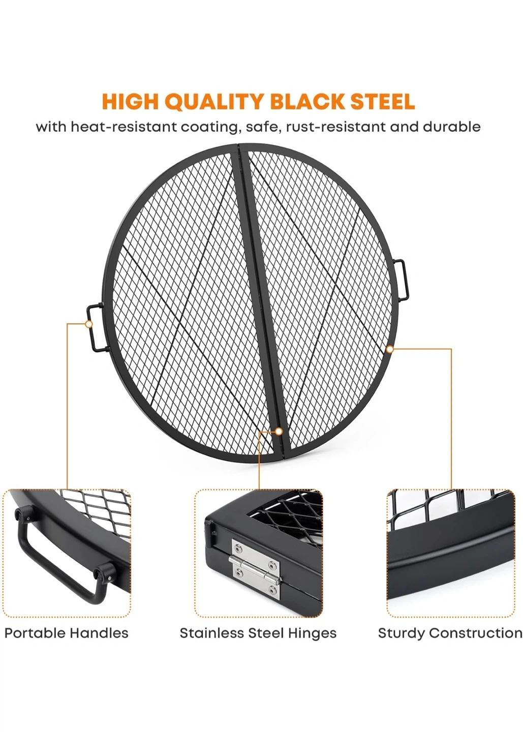 Get ready for outdoor cooking with this Stanbroil X-Marks Fire Pit Cooking Grate! It features a large cooking area perfect for camping, BBQ parties, and large gatherings. - Made with high-quality black steel and a heat-resistant coating, it's safe, rust-resistant, and durable - Portable handles and stainless steel hinges for sturdy construction - The thick and tight grids are heat-resistant without warping, so food won't fall down - Grid thickness: 0.07" / 1.8 mm - Heat resistance: 572°F / 300°C - Load-bearing: 44 lbs / 20 kg - Easy to clean