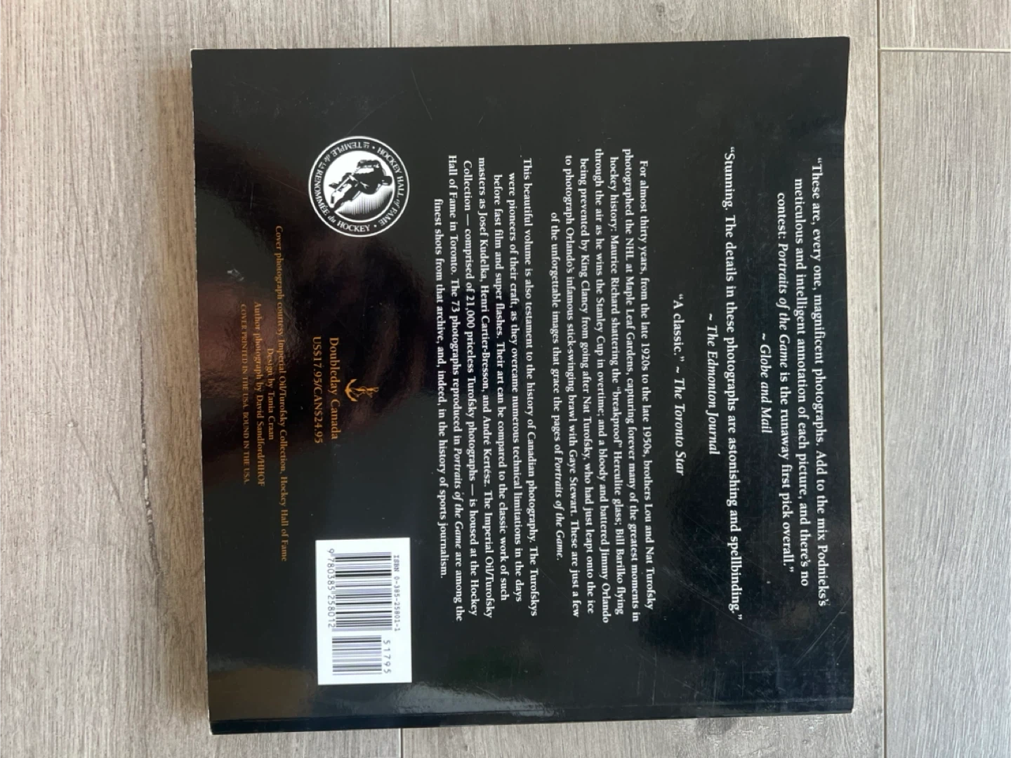 Selling the book “Portraits of the Game: Classic Photographs from the Turofsky Collection at the Hockey Hall of Fame" by Andrew Podnieks. It's a fascinating look at hockey history through photography!