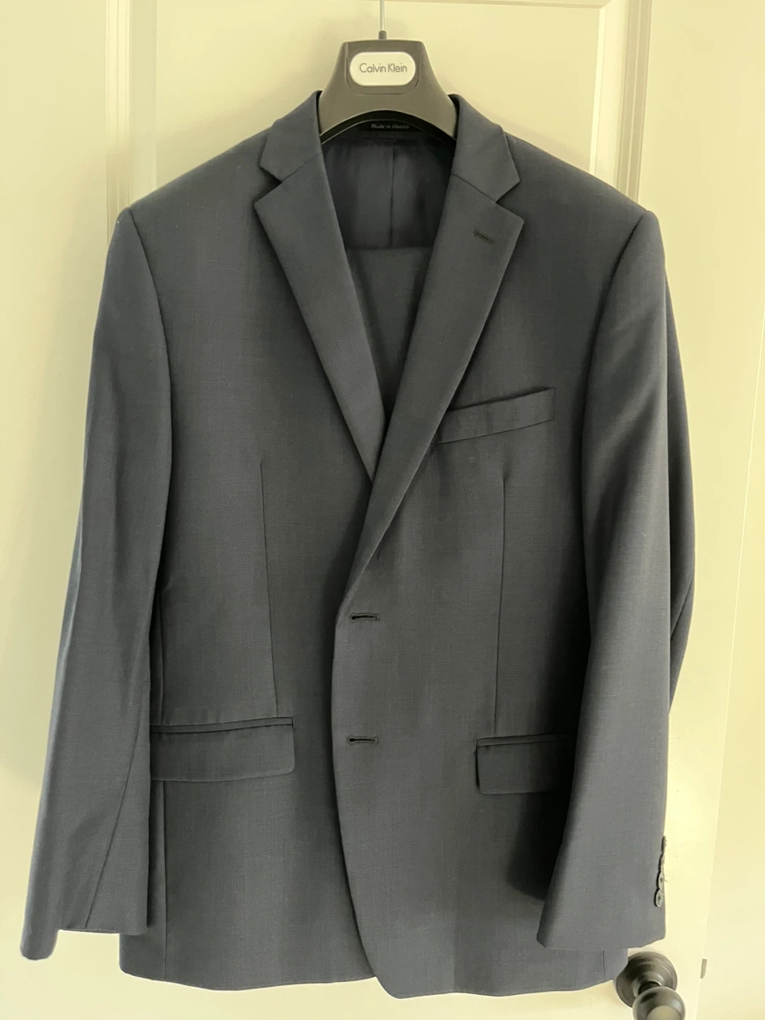 Selling a Calvin Klein suit that I purchased from Hudson's Bay. It's in great condition and comes with a garment bag to keep it protected. A classic addition to any wardrobe!
