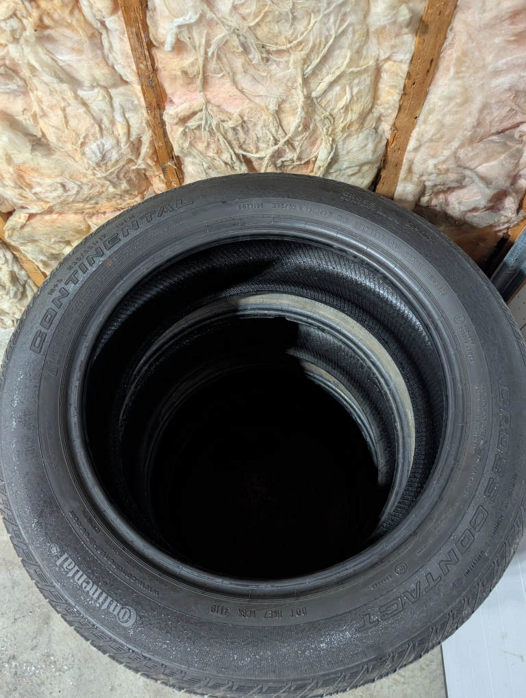 (4)-235/55R19 Continental Cross Contact All Season Tires Tires Only No Rims 6-7/32nds Or 65% Of Tread Left $450.00 Obo Located Near Concordia and Lagimodiere (#66)