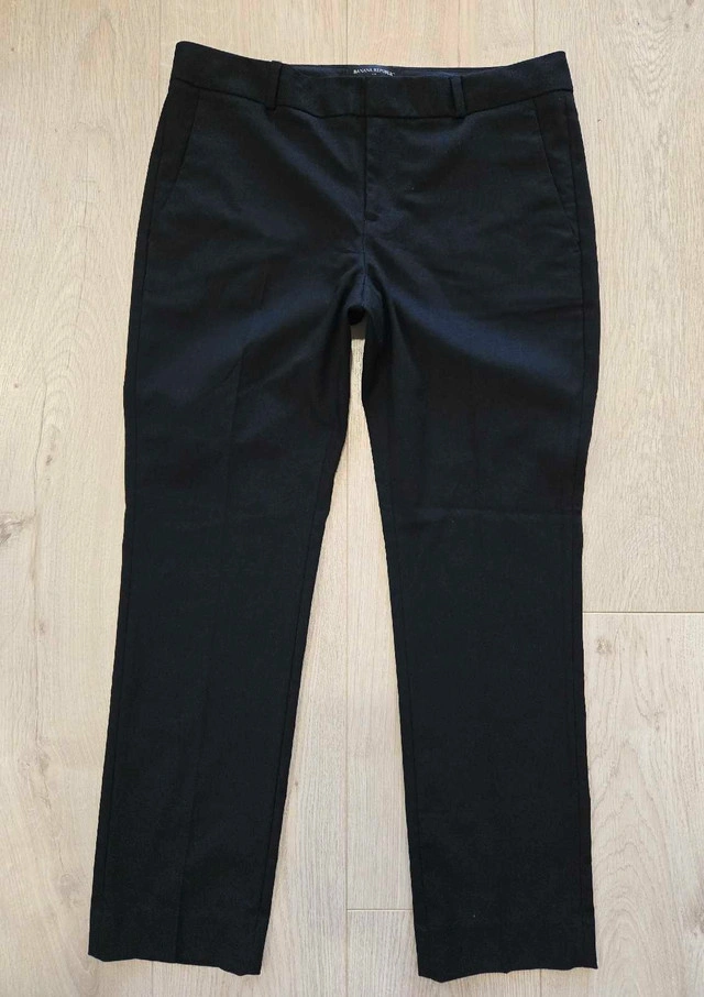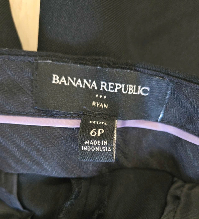 Banana Republic Ryan. Black. Size Petite 6. From a smoke and pet-free home. These are a pair of Banana Republic Sloan black curvy fit pants in a size 6, perfect for a professional or casual look. They are gently used but still in great condition. * Brand: Banana Republic * Style: Ryan * Size: 6 Petite * Colour: Black I'm pricing these pants at $30 CAD. If the ad is up, the pants are available!