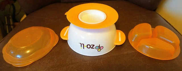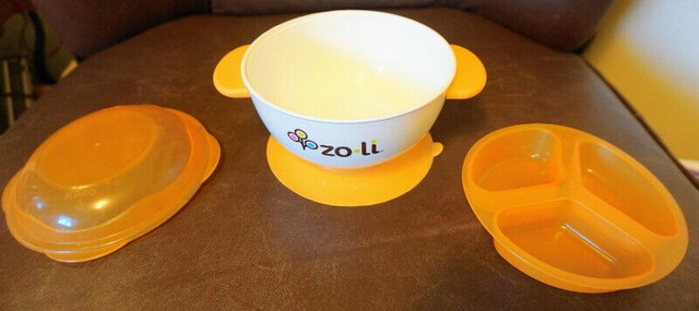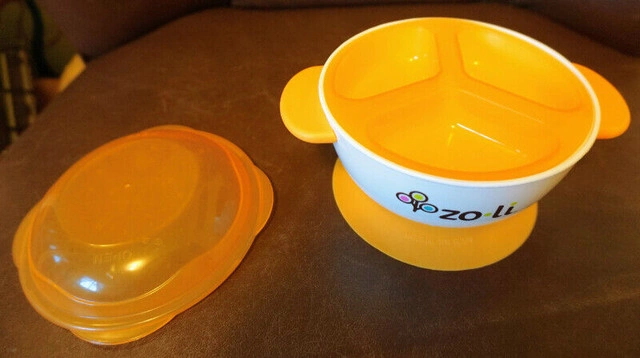 Tray, cover & cutlery are brand new. The bowl is in used but good condition. STUCK takes the suction bowl to a whole new level. The bowl kit was designed with an extra strong suction base, a deeper bowl to hold more and cut down on food overflow, a lid for easy transport and storage, and an ergonomic fork and spoon for toddlers learning to self-feed. Zoli - STUCK Feeding Bowl Set - Orange. If you see this ad, the item is still available.