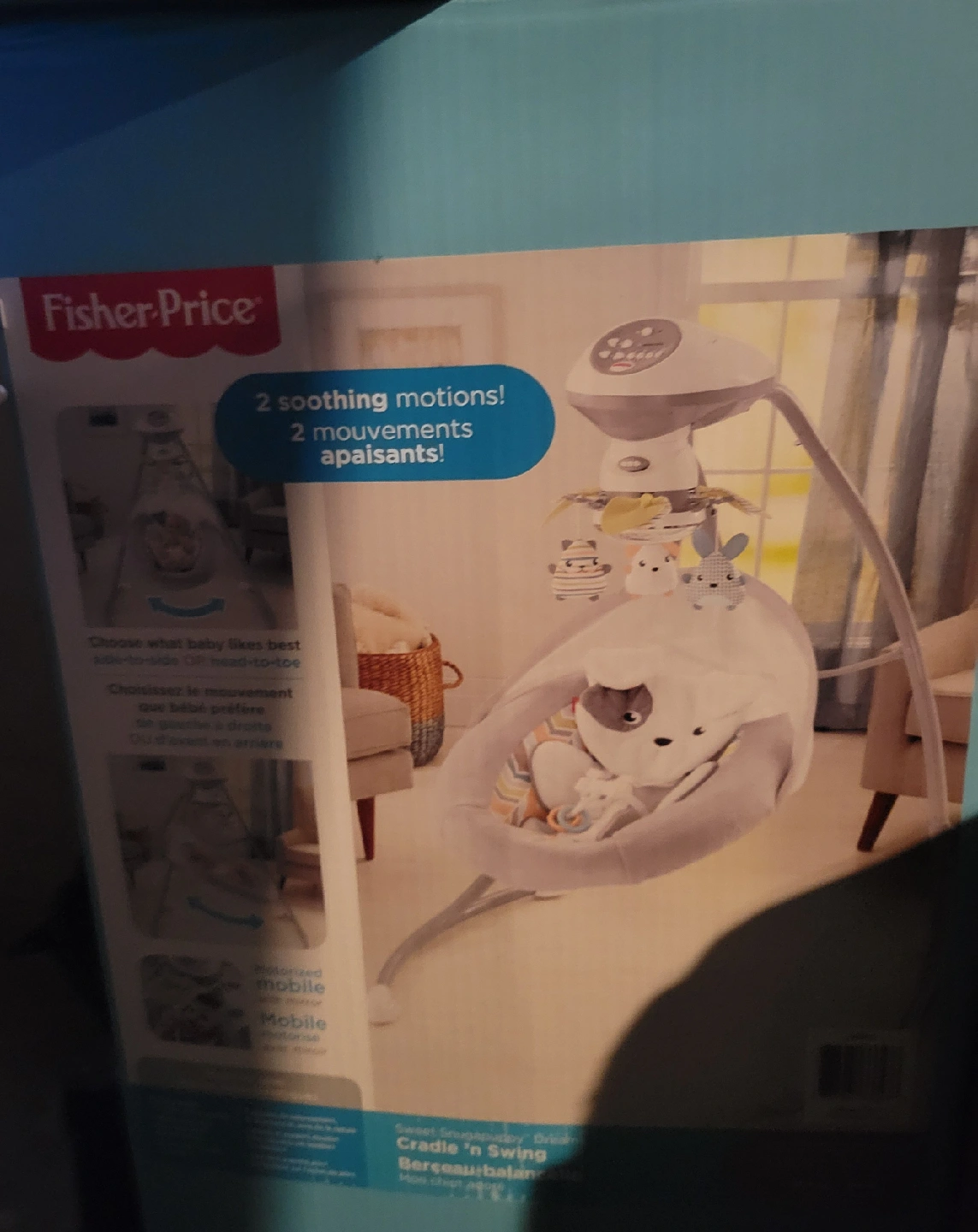 This is a Fisher-Price Sweet Snugapuppy Cradle 'n Swing. It features: - Dual motion baby swing - Music, sounds, and motorized mobile - Soothing motions Originally bought for $169.99