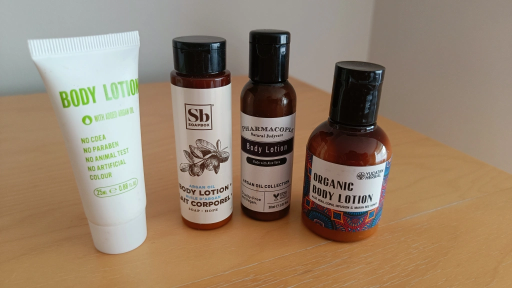 Selling a bundle of body lotions! Includes: - Body Lotion with Argan Oil (25ml) - Soapbox Argan Oil Body Lotion - Pharmacopia Natural Bodycare Body Lotion with Aloe Vera (30ml) - Yucatan Herbal Organic Body Lotion with Aloe Vera, Copal Infusion & Mayan Bee Honey
