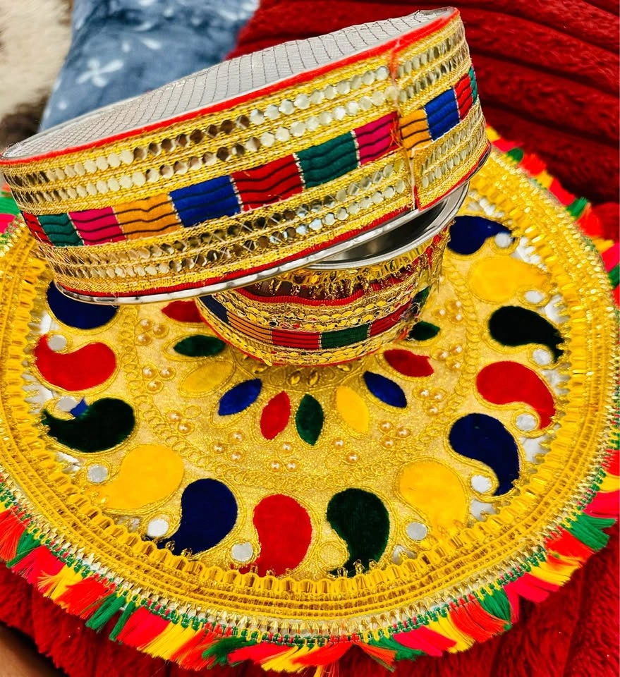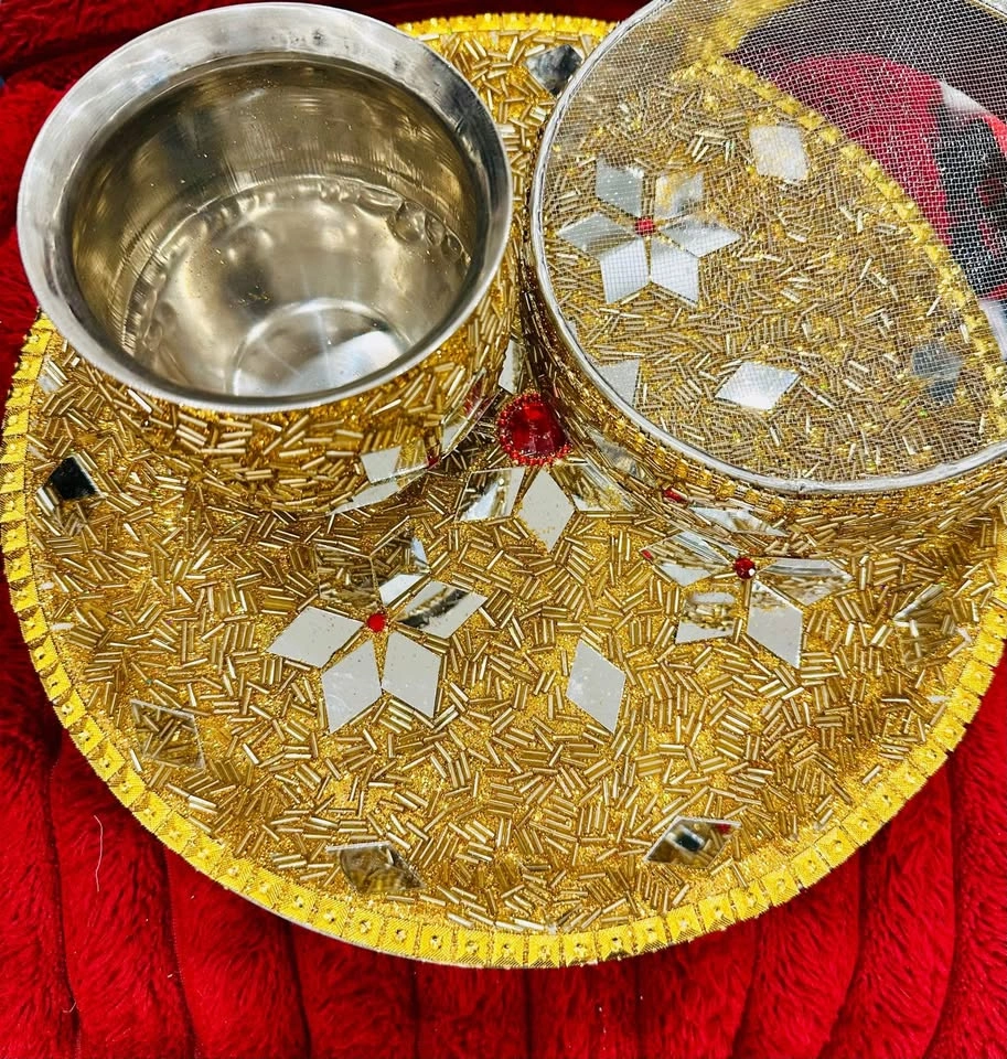 Thali,Gadvi, channi, henna cone, bindi pack, puja poster everything included
