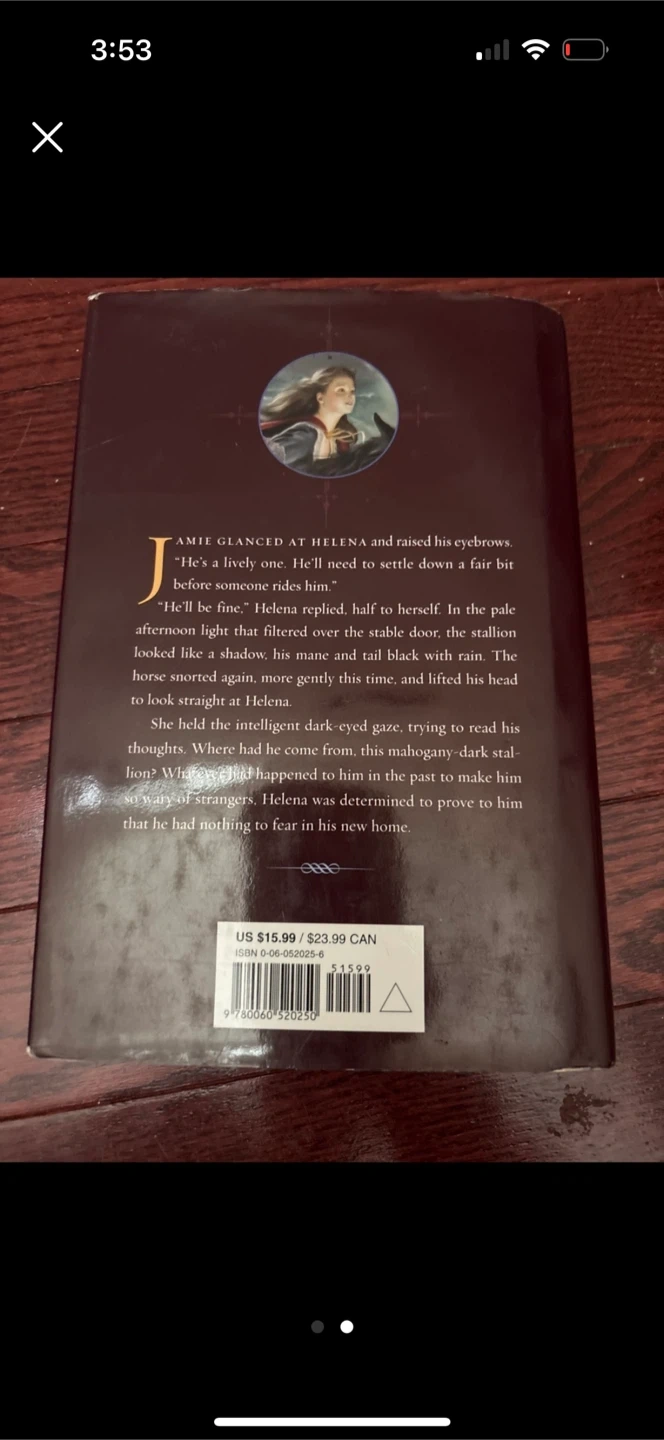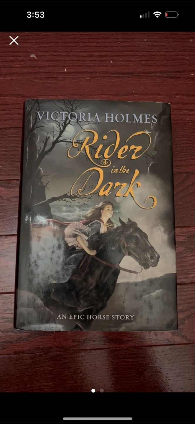 Selling the book Rider in the Dark by Victoria Holmes. It's an epic horse story! The book was originally priced at $15.99 US / $23.99 CAN.