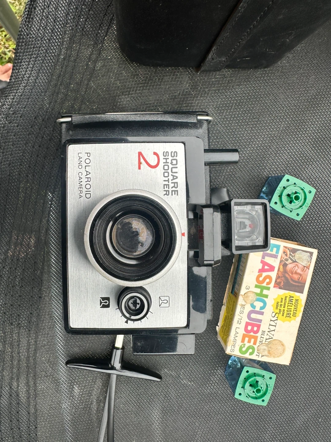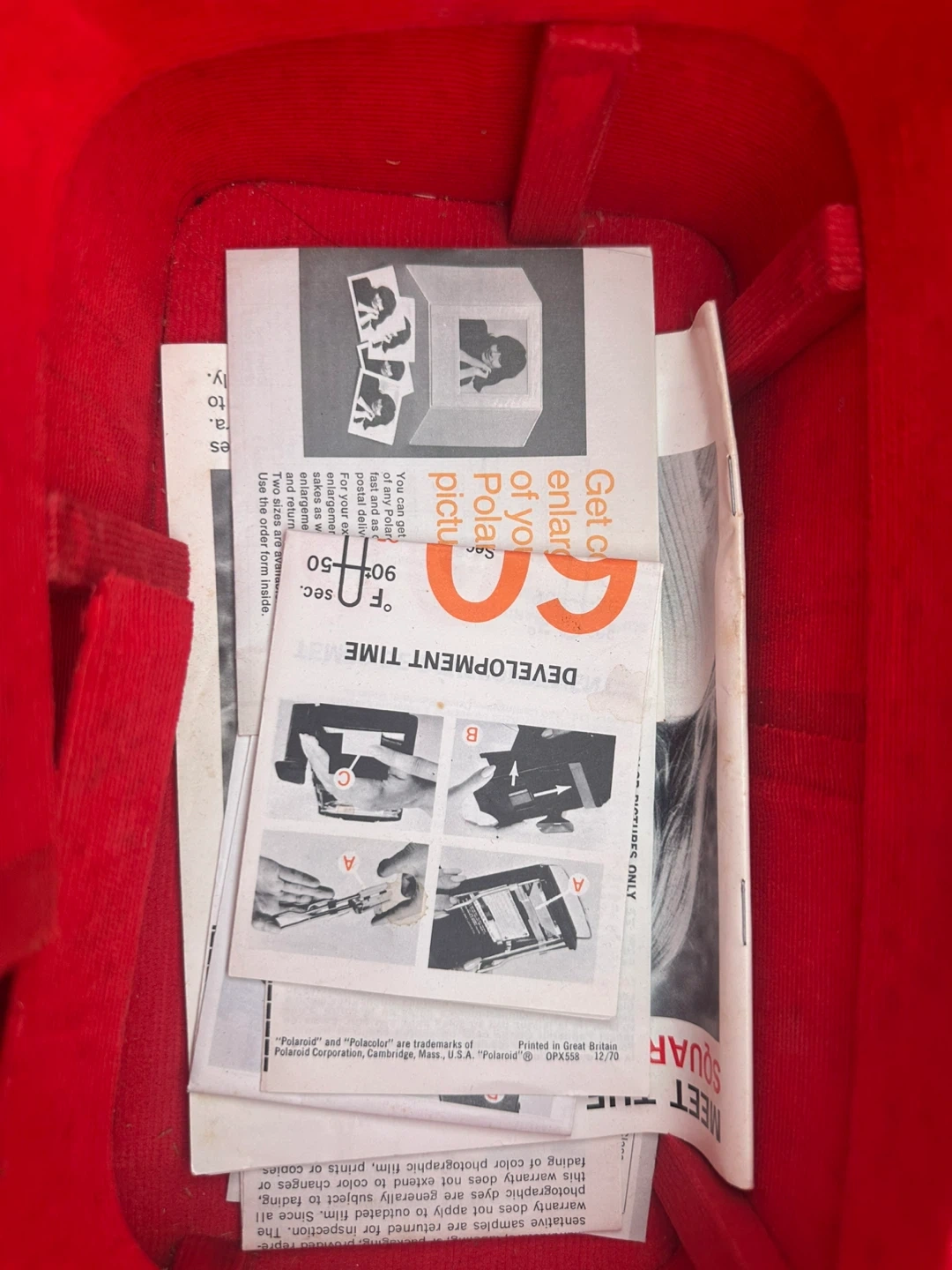 Selling a vintage Polaroid Square Shooter 2 Land Camera! It comes with a box of Flashcubes and the original red carrying case. Also included are some original documents and guides. This camera is a classic and would be a great addition to any collection!