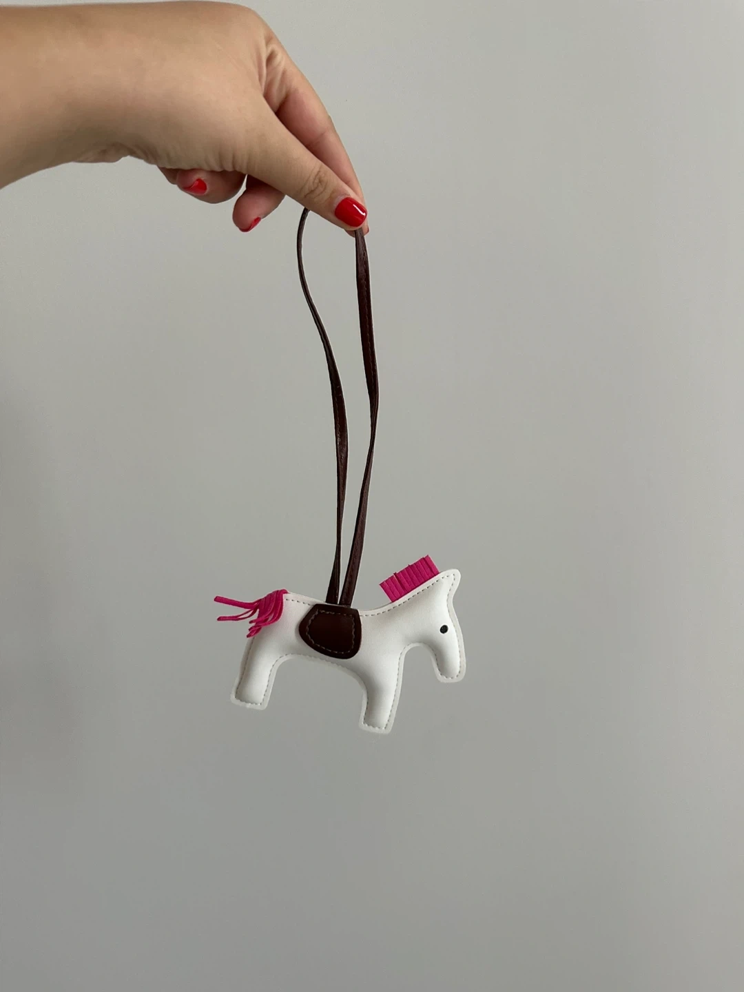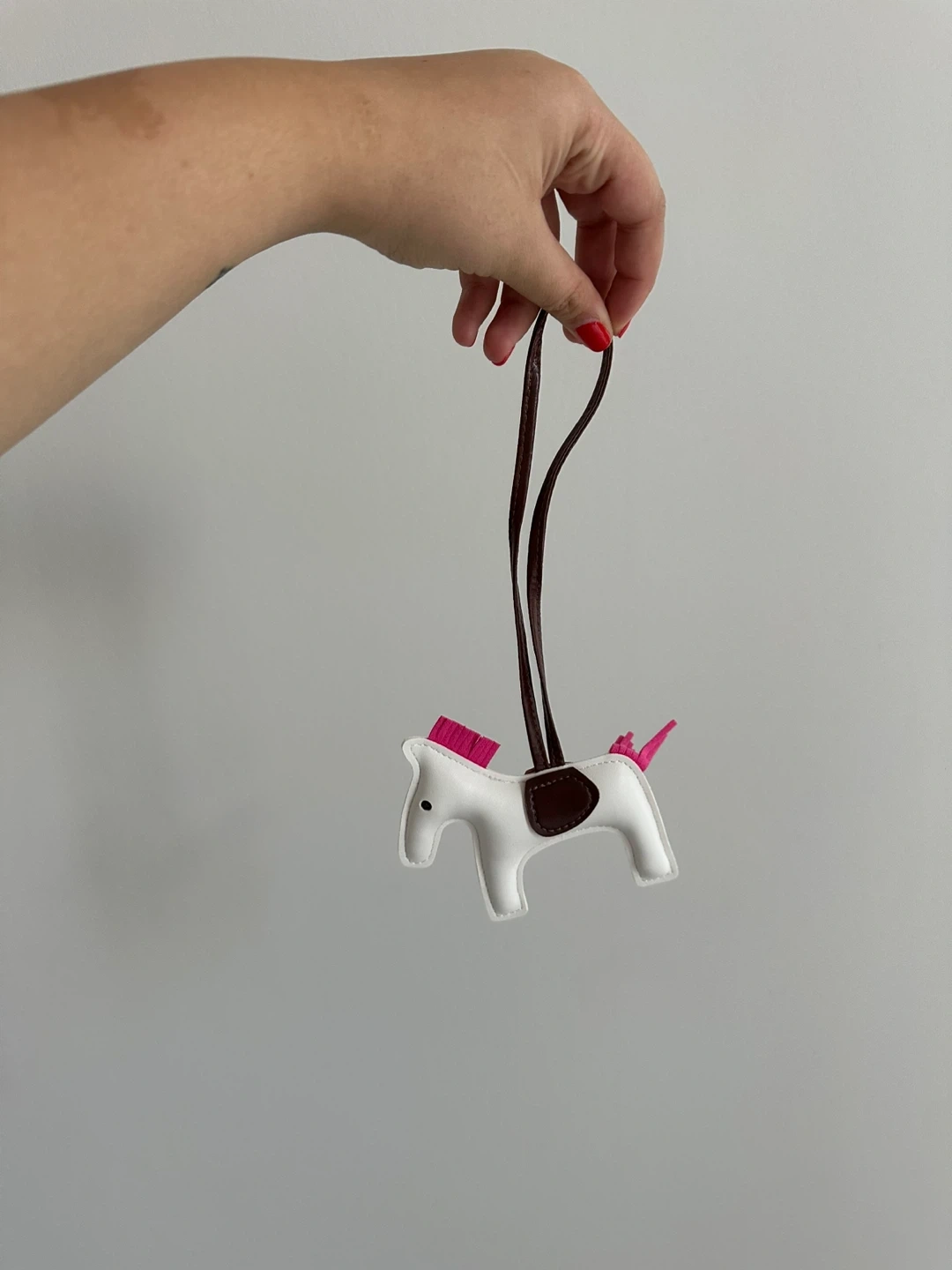 Cute horse bag charm in white with pink accents! It's in great condition and ready to add some flair to your bag or keys