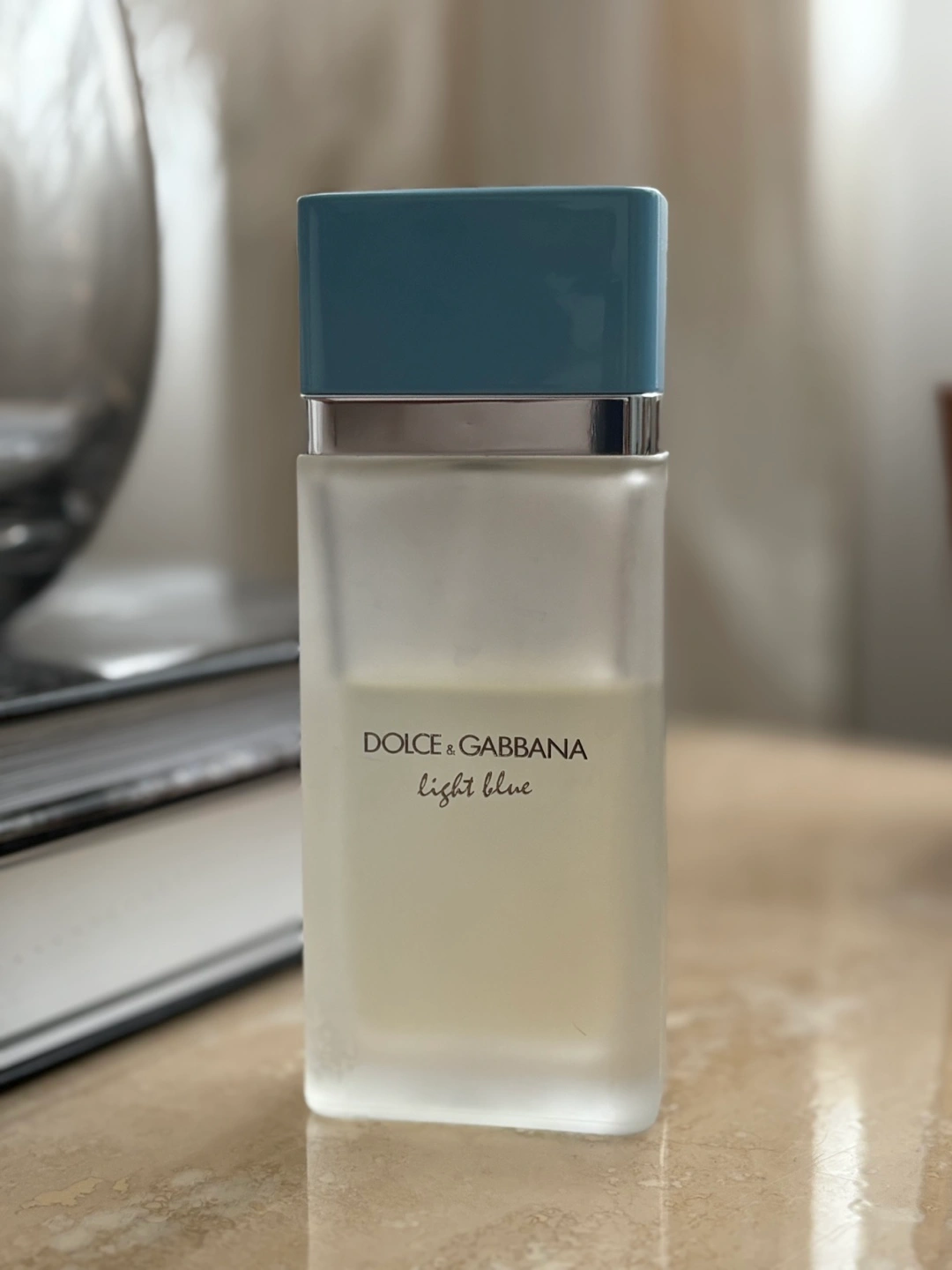 Selling a bottle of Dolce & Gabbana Light Blue perfume 100 ml bottle . It's a light and refreshing scent, perfect for everyday wear! Bottle is partially used, as shown in the picture.