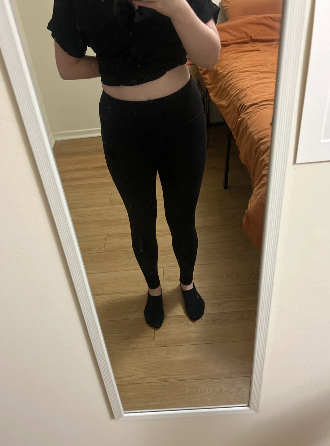 Selling a pair of black leggings from Garage in size small. They are made of 56% cotton, 36% polyester, and 8% spandex
