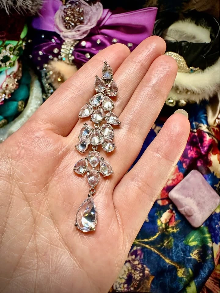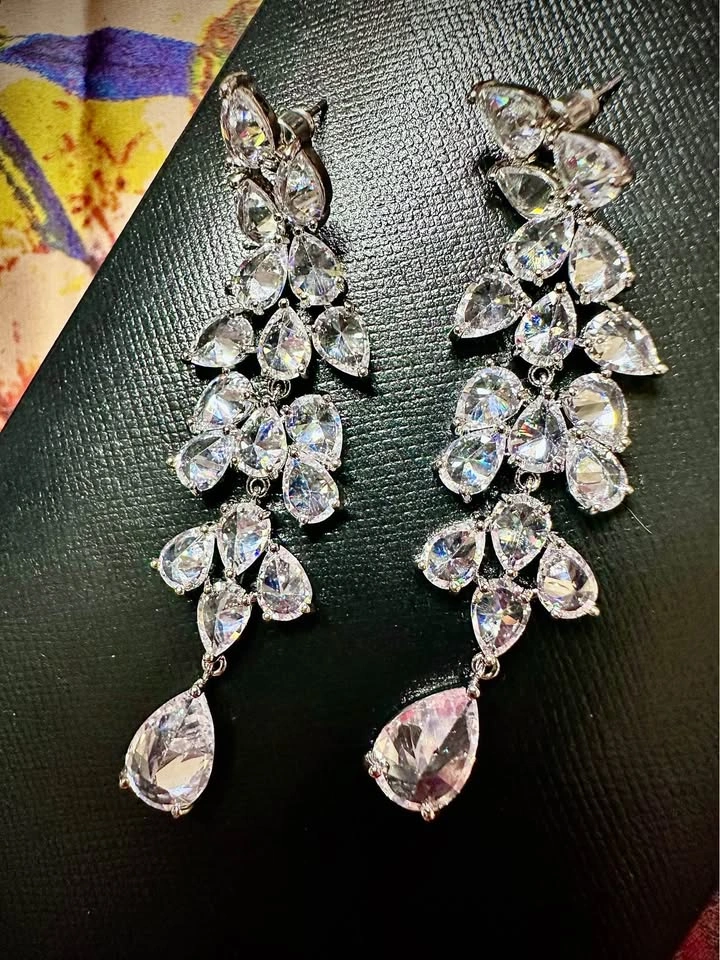 Add a touch of timeless glamour with these high-quality, crystal-clear drop earrings. Featuring layers of brilliant white crystals in teardrop cuts, these earrings catch and reflect the light beautifully, creating a dazzling effect from every angle. Designed to complement all face shapes and hair colors, they offer a refined sparkle that’s both versatile and eye-catching. Crafted with 925 sterling silver posts, these earrings are hypoallergenic and perfect for sensitive ears. White crystals are cherished in crystal healing for promoting clarity, balance, and calm, making this pair not only stylish but energetically uplifting as well. Perfect for: • Everyday elegance or special gatherings • Pairing with party outfits, gowns, or dressy occasions • A thoughtful gift for someone who loves classic sparkle Brand new, never worn. Their graceful waterfall design ensures they pair effortlessly with almost any look — from sleek ponytails to flowing curls. Let me know if you're interested!