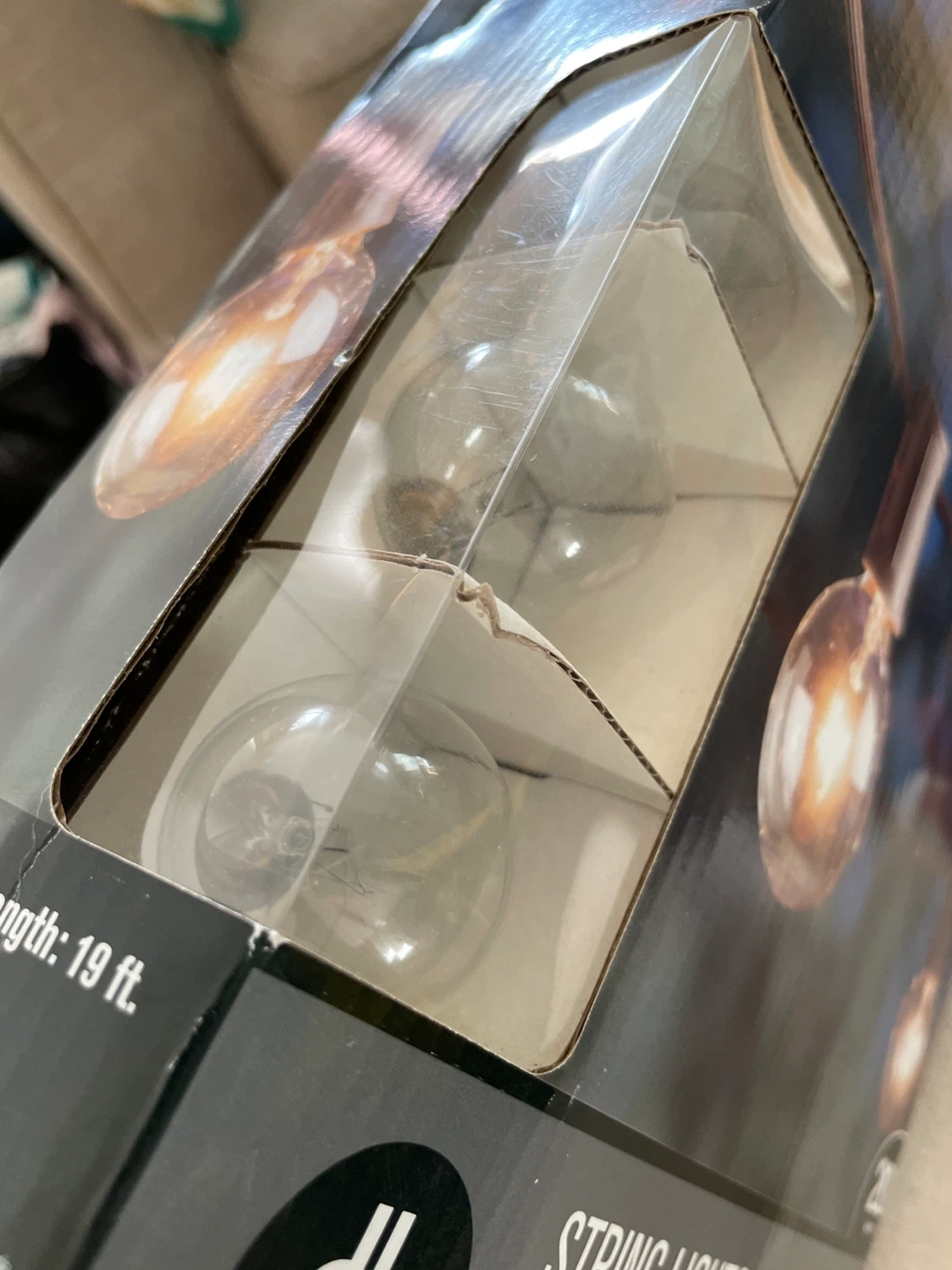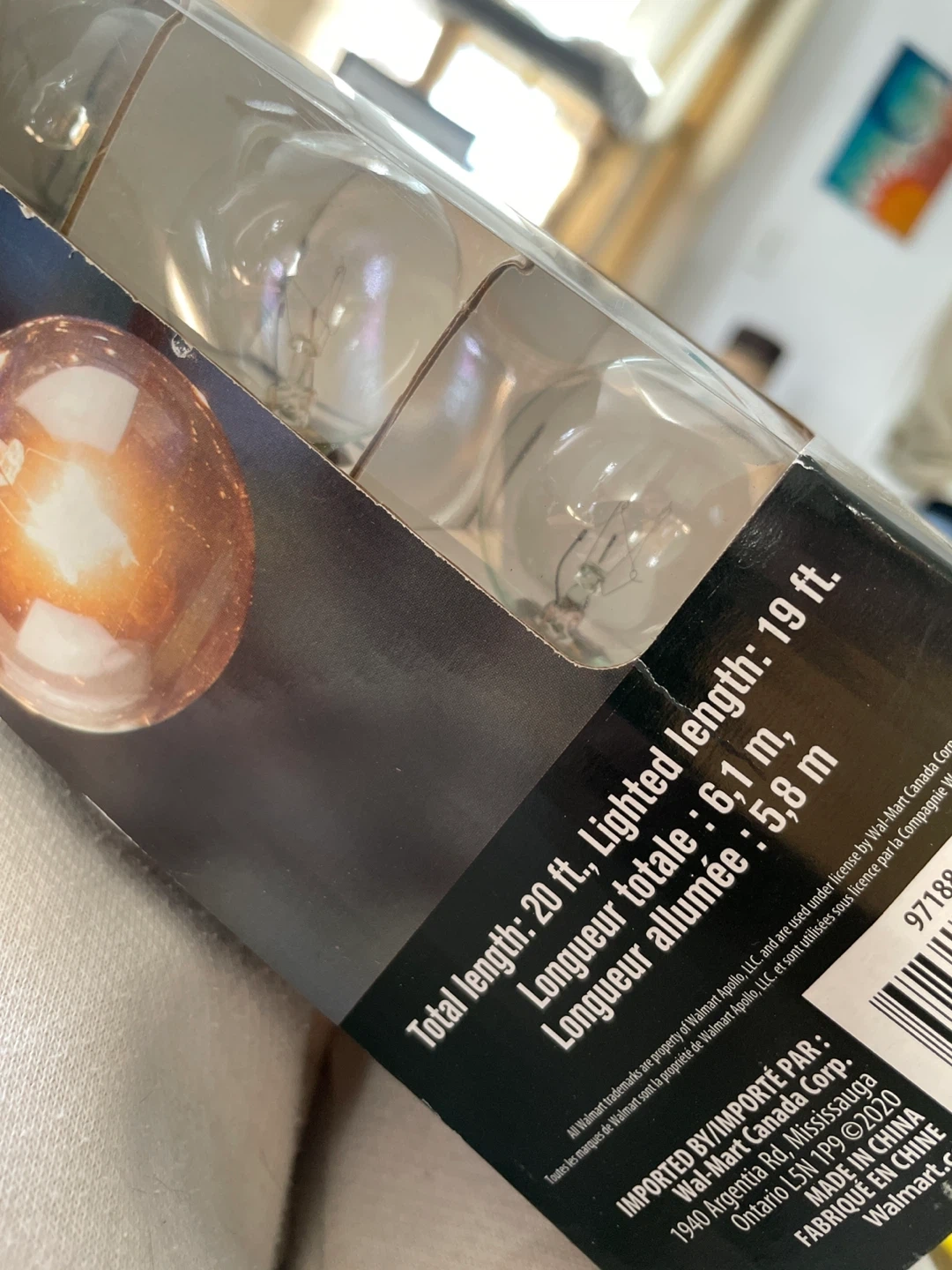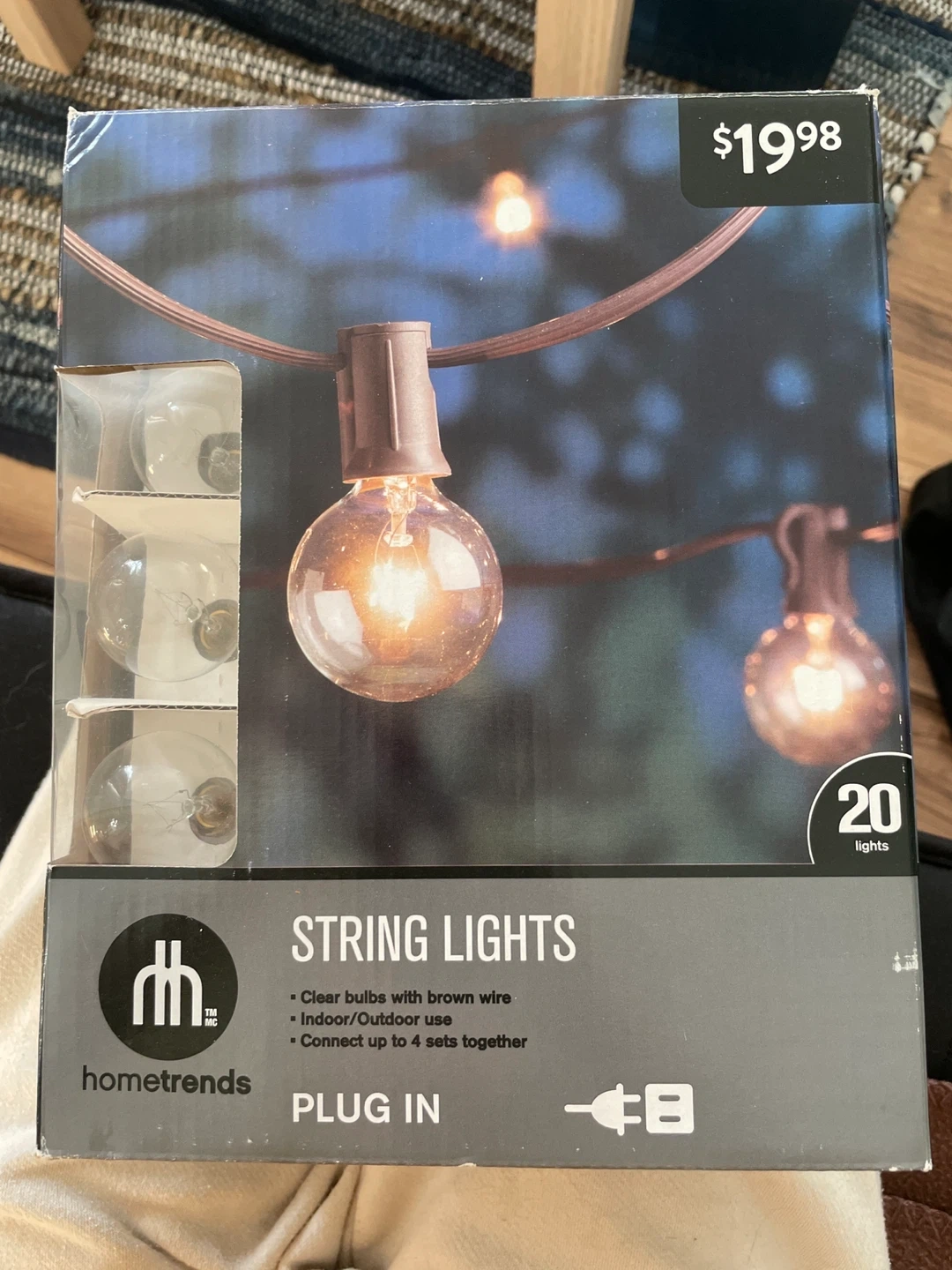 Selling a set of hometrends string lights! It comes with 20 clear bulbs and a brown wire, perfect for indoor or outdoor use. You can even connect up to 4 sets together. The total lighted length is 19 ft. Originally bought for $20. It has never been used and has remained in the original packaging!