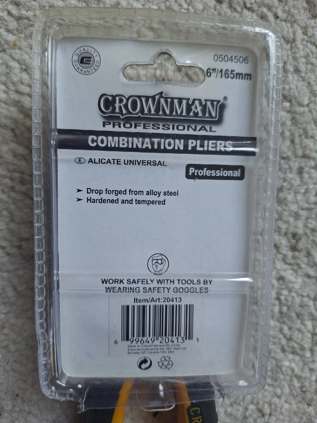 Selling a new set of CROWNMAN Professional Combination Pliers! These are 6 inches/165mm. They are drop forged from alloy steel and hardened and tempered for durability