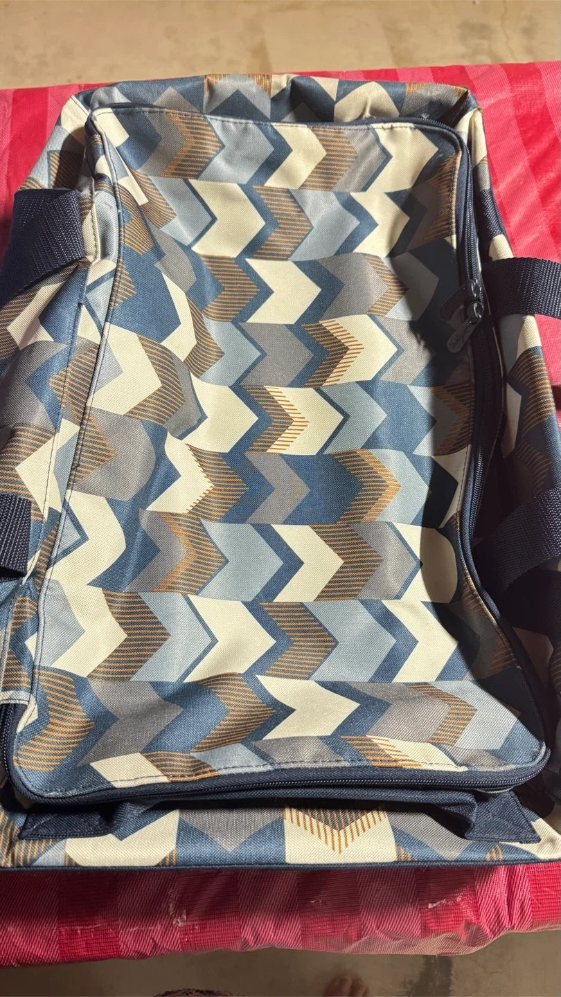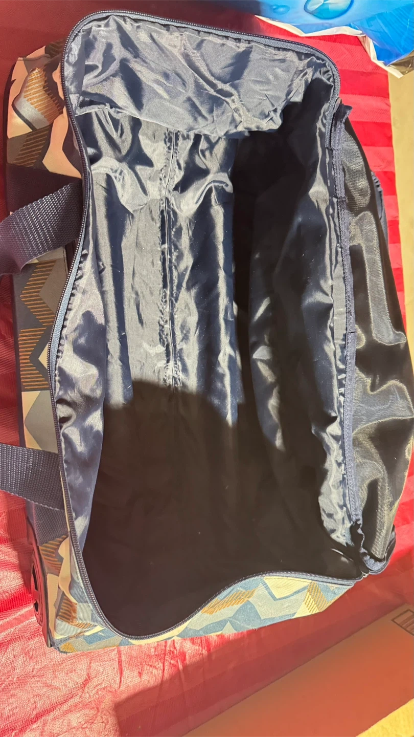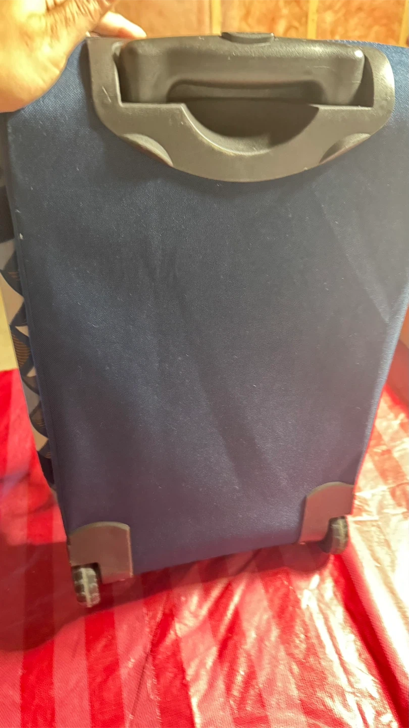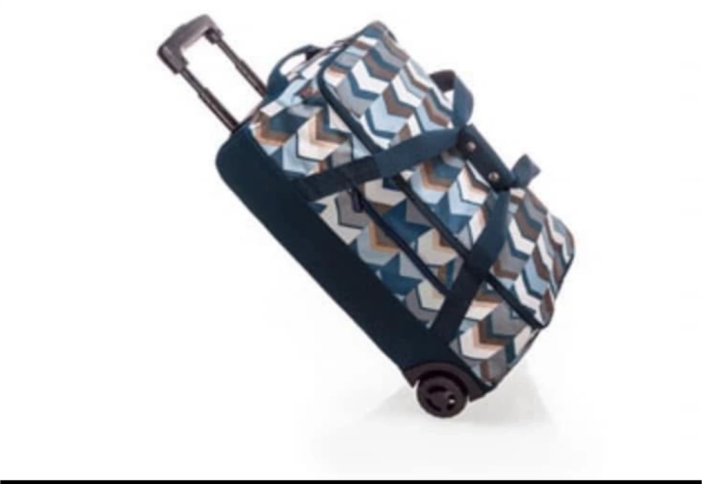 Selling a Thirty-One rolling suitcase! It's in great shape and ready for your next adventure. The bag is blue with a geometric pattern. It has a retractable handle and wheels for easy transport. Lots of room inside! Pick up near Grace Hospital