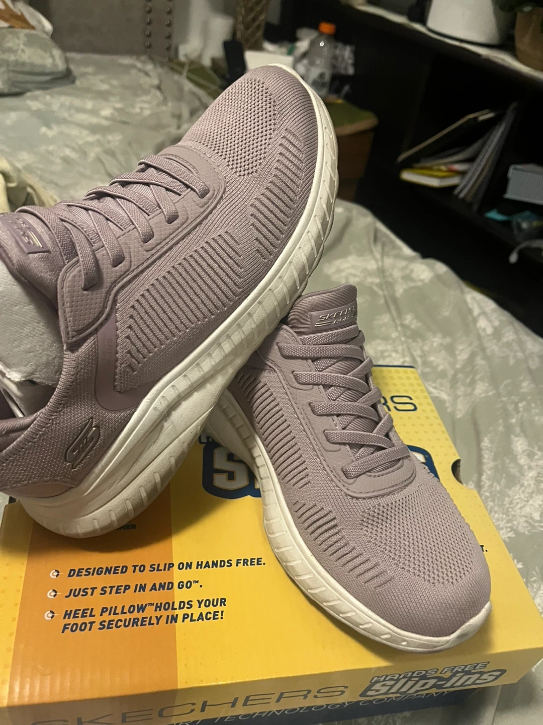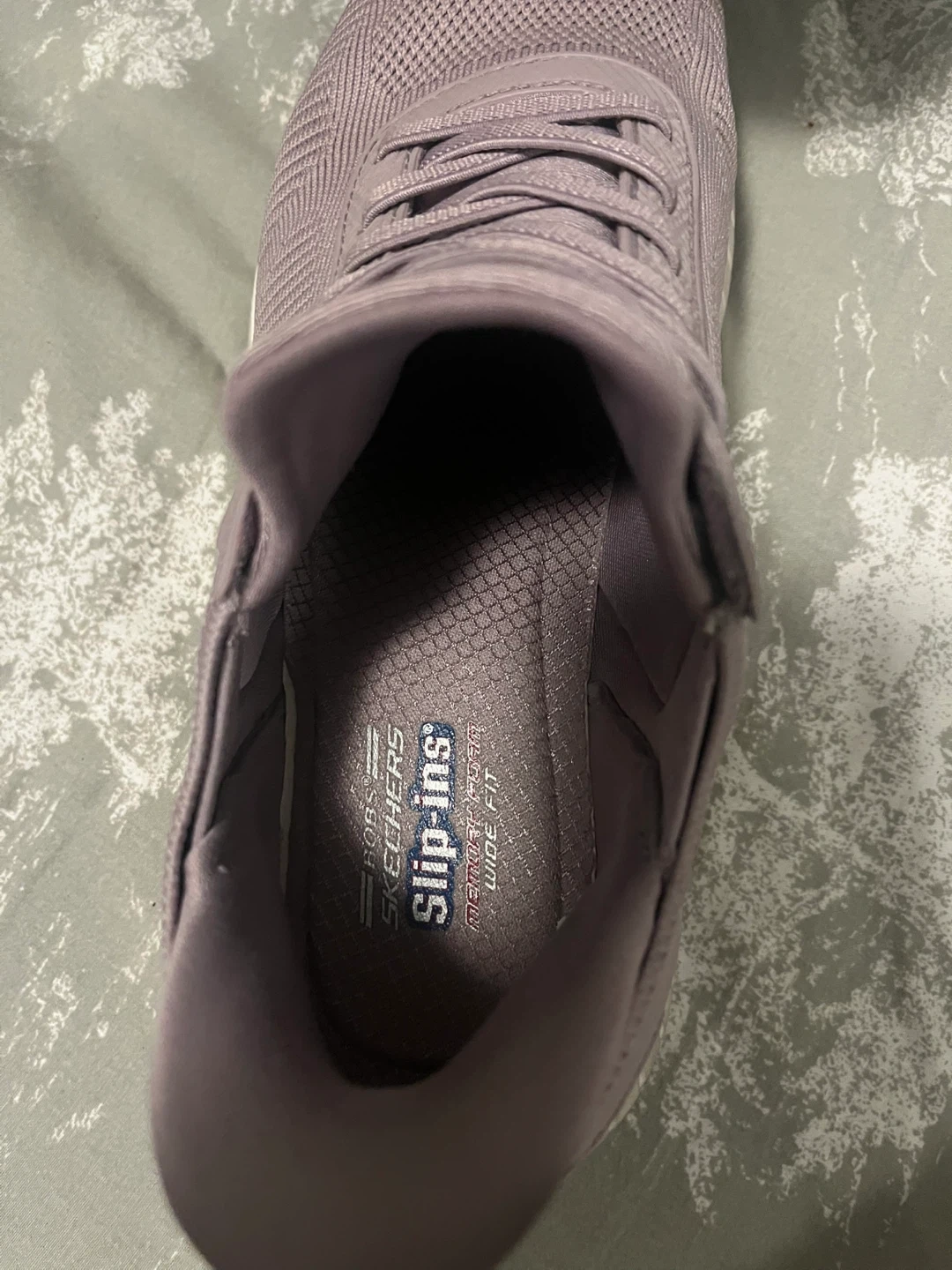 Selling a pair of Skechers Hands Free Slip-ins in a lovely lavender colour! They are a women's size 8.5. These feature a heel pillow that holds your foot securely in place. They are designed to slip on hands free and are super comfy!