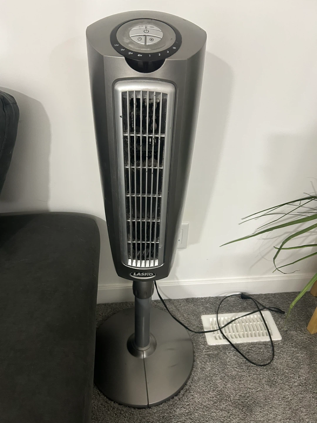 Selling a Lasko tower fan. It's in good working condition and ready to keep you cool! It has multiple speed settings and a timer for added convenience