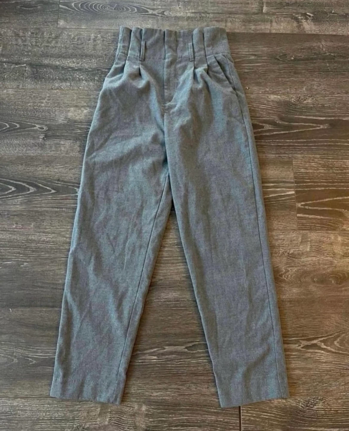 Selling a pair of grey high-waisted trousers. They're in great condition and would be a stylish addition to your wardrobe!
