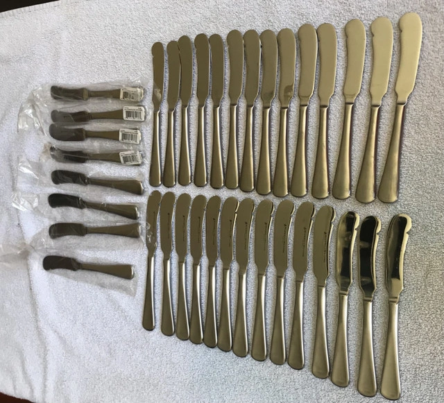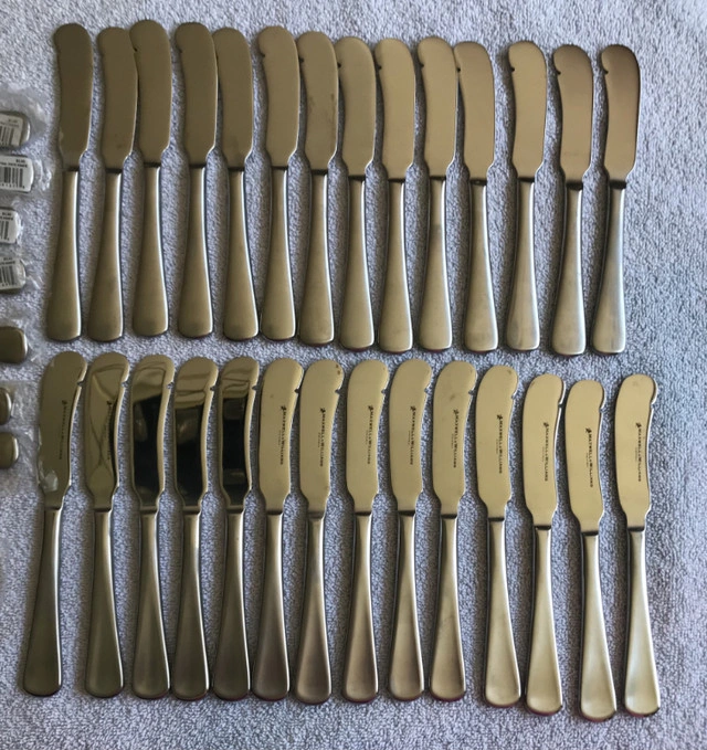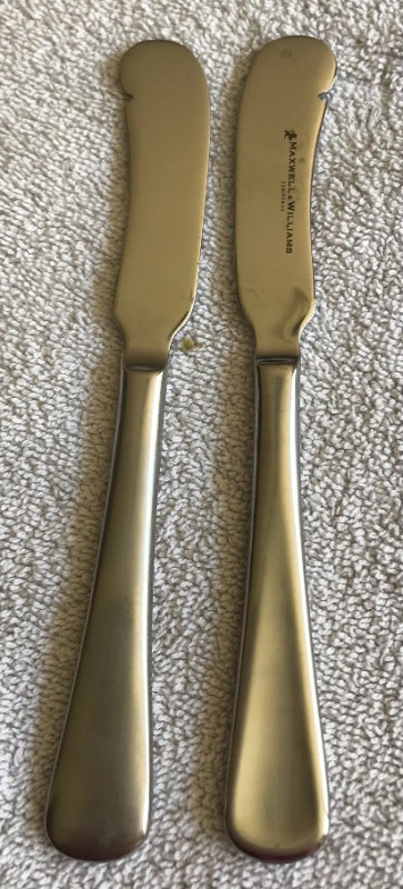Maxwell & Williams Cutlery Small Flatware Cosmopolitan 48 pieces Small Knives - 24 • Fish, butter, pie, margarine, jam, honey, appetizers Small Forks - 24 • Appetizers, salads, dessert, pastry, pie, fruit, fish, pate, cheese 8/10 stainless steel Dishwasher safe Value over $300 Condition: New